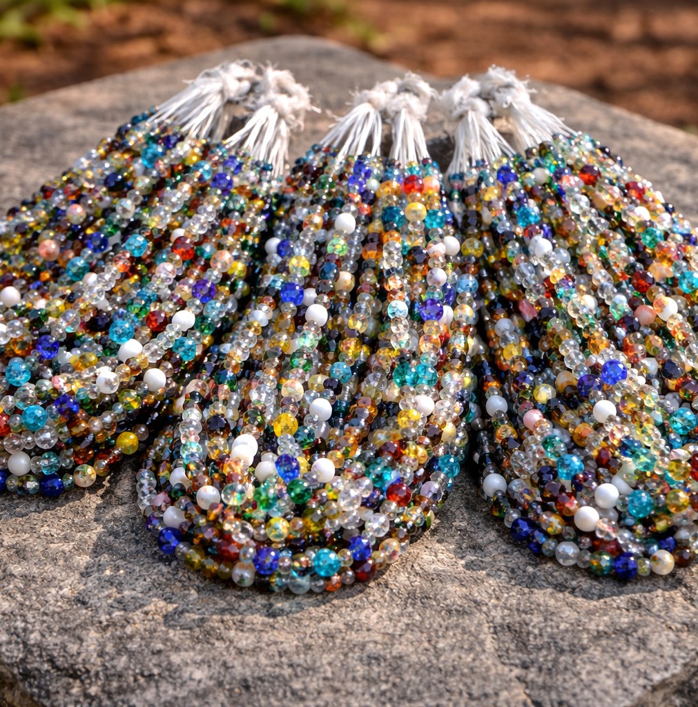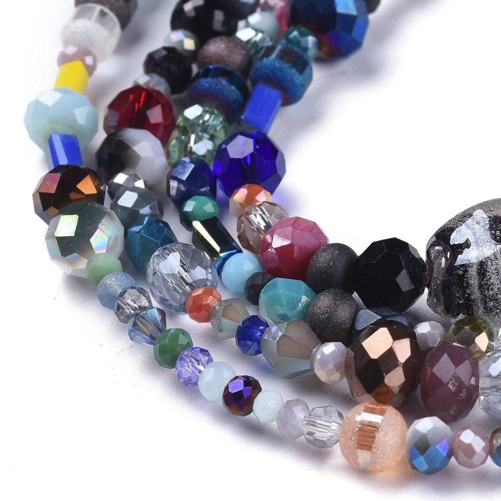 Produktinformationen "Facettierter Glasperlenstrang bunte Mischung von verschiedenen Farben und Formen 2-13 x 2-20 x 2-12 mm"