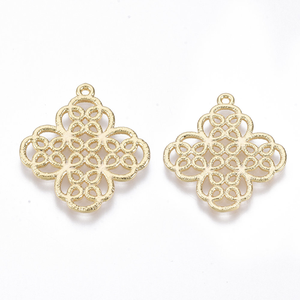 Produktinformationen "Filigraner Metallanhänger Chinesischer Knoten 18k vergoldet 28 x 26 x 1,5 mm"