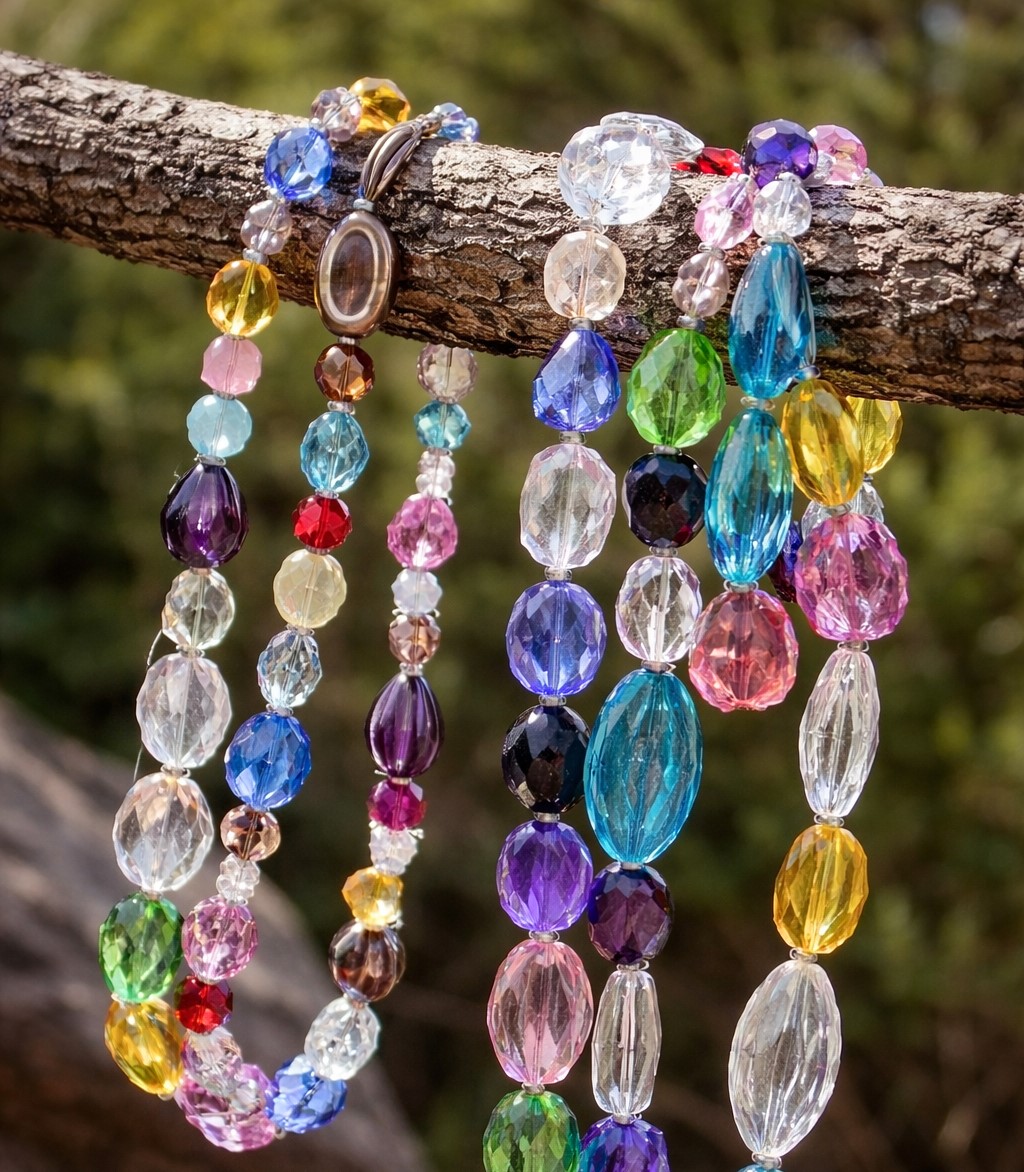 Produktinformationen "Glasperlenstrang facettiert Mischformen und Mischfarben 4,5 - 33 x 6 -25 x 4 -15 mm"