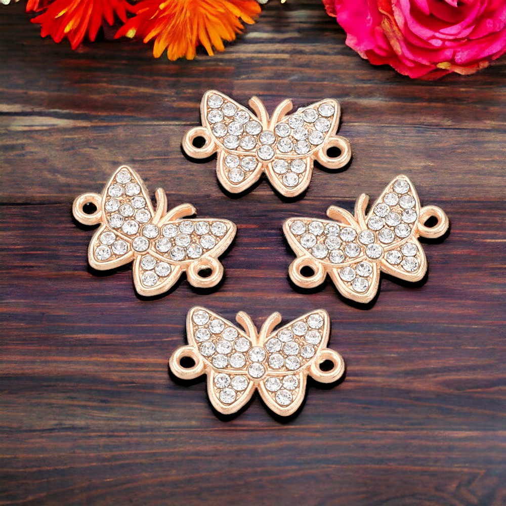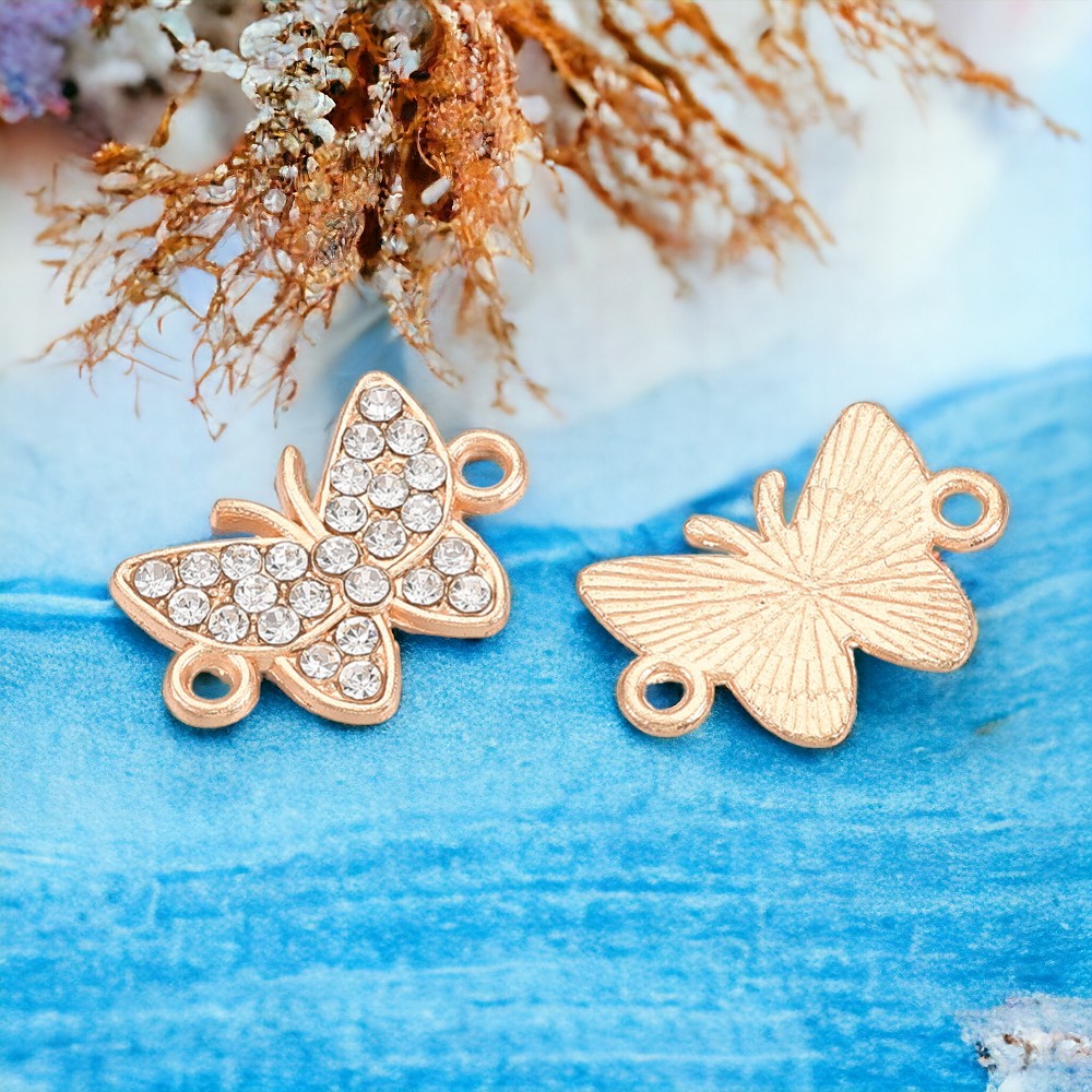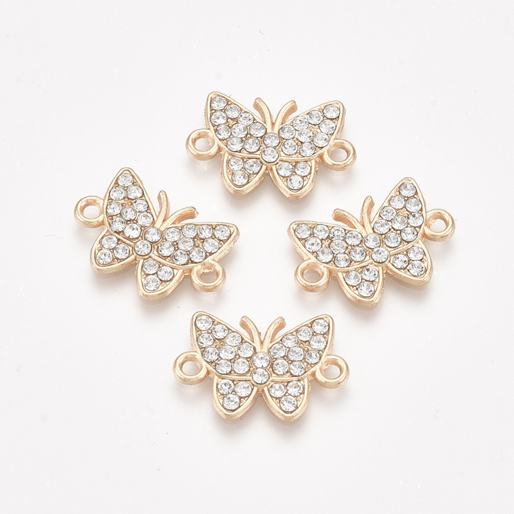 Goldfarbener Verbinder aus Metall mit Strasssteinen Schmetterling 13 x 19 x 2 mm