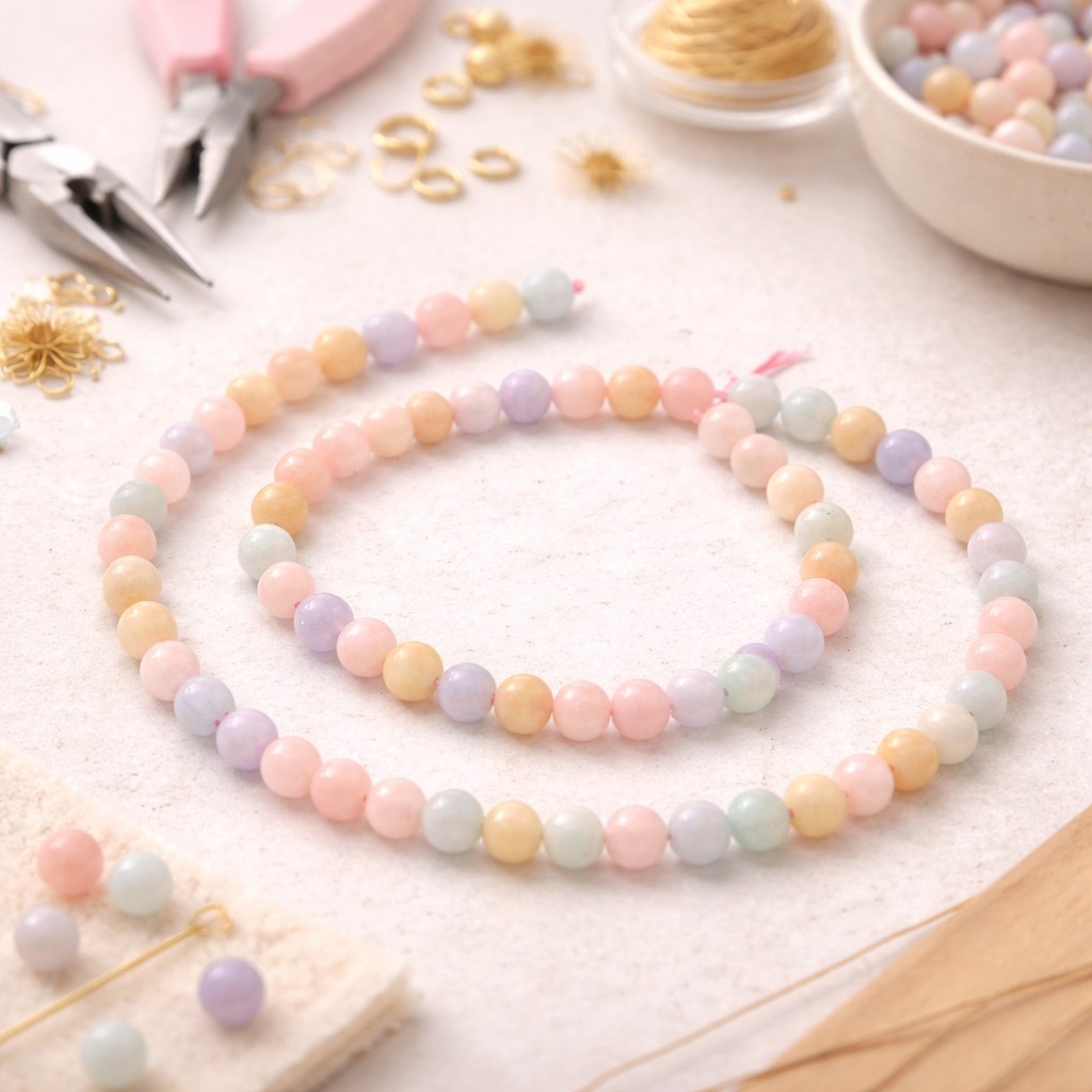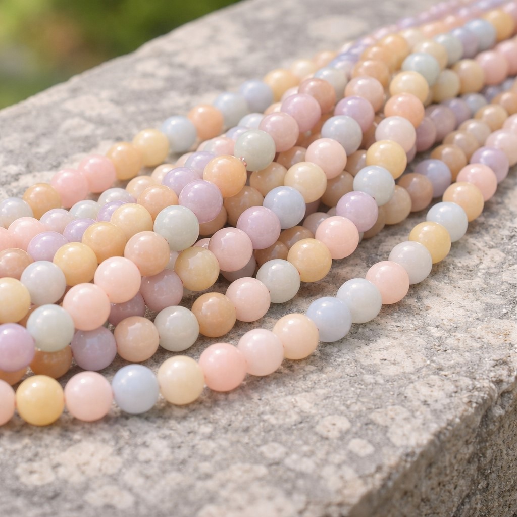 Heller Morganit Perlenstrang 6,5 - 6,7 mm rund glatt (ca. 60 Perlen / ca. 37 cm Länge)