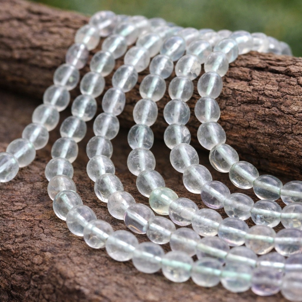 Hellgrüner Fluorit Perlenstrang 6 mm unregelmäßige runde Perlen ( ca. 33 cm Länge)