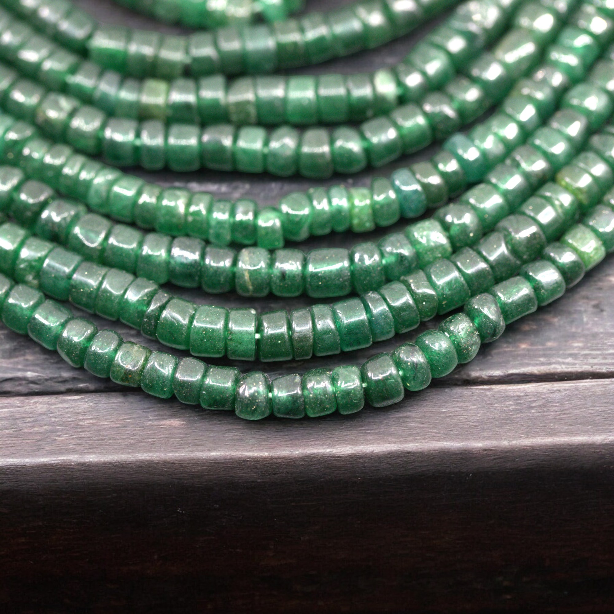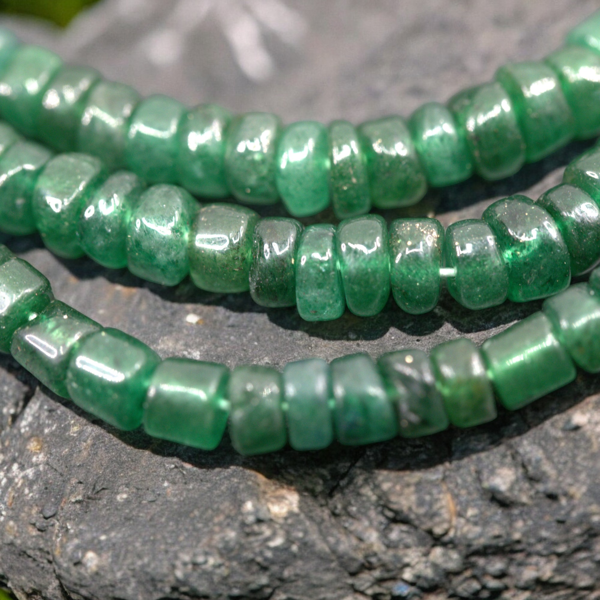 Jade Perlenstrang 8 - 8,5 x 5 - 5,5 unregelmäßige Rondelle (ca. 35 cm Länge)