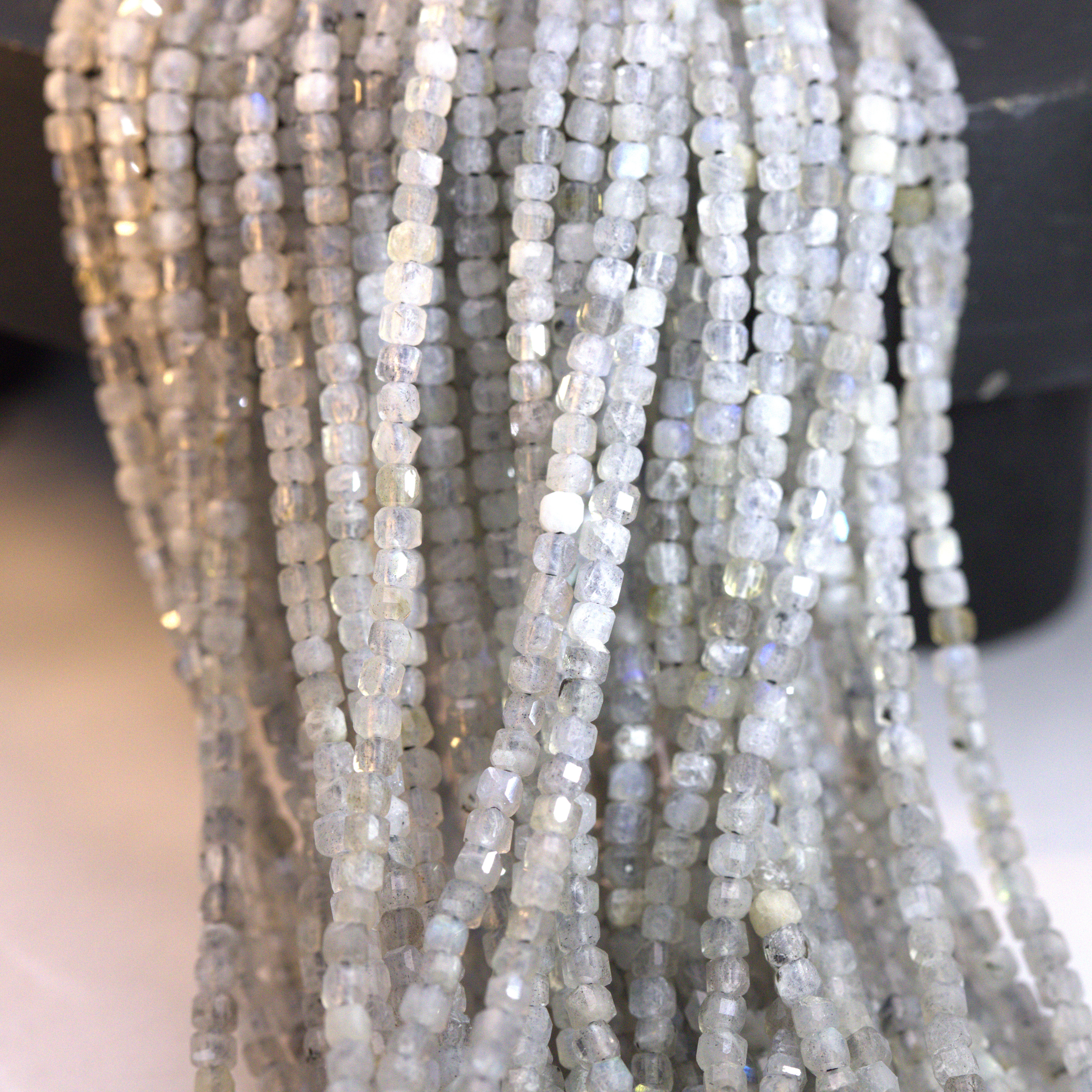 Produktinformationen "Labradorit Würfel Perlenstrang 2,4 x 2,4 x 2,4 mm (ca. 180 Perlen / ca. 38 cm Länge)"