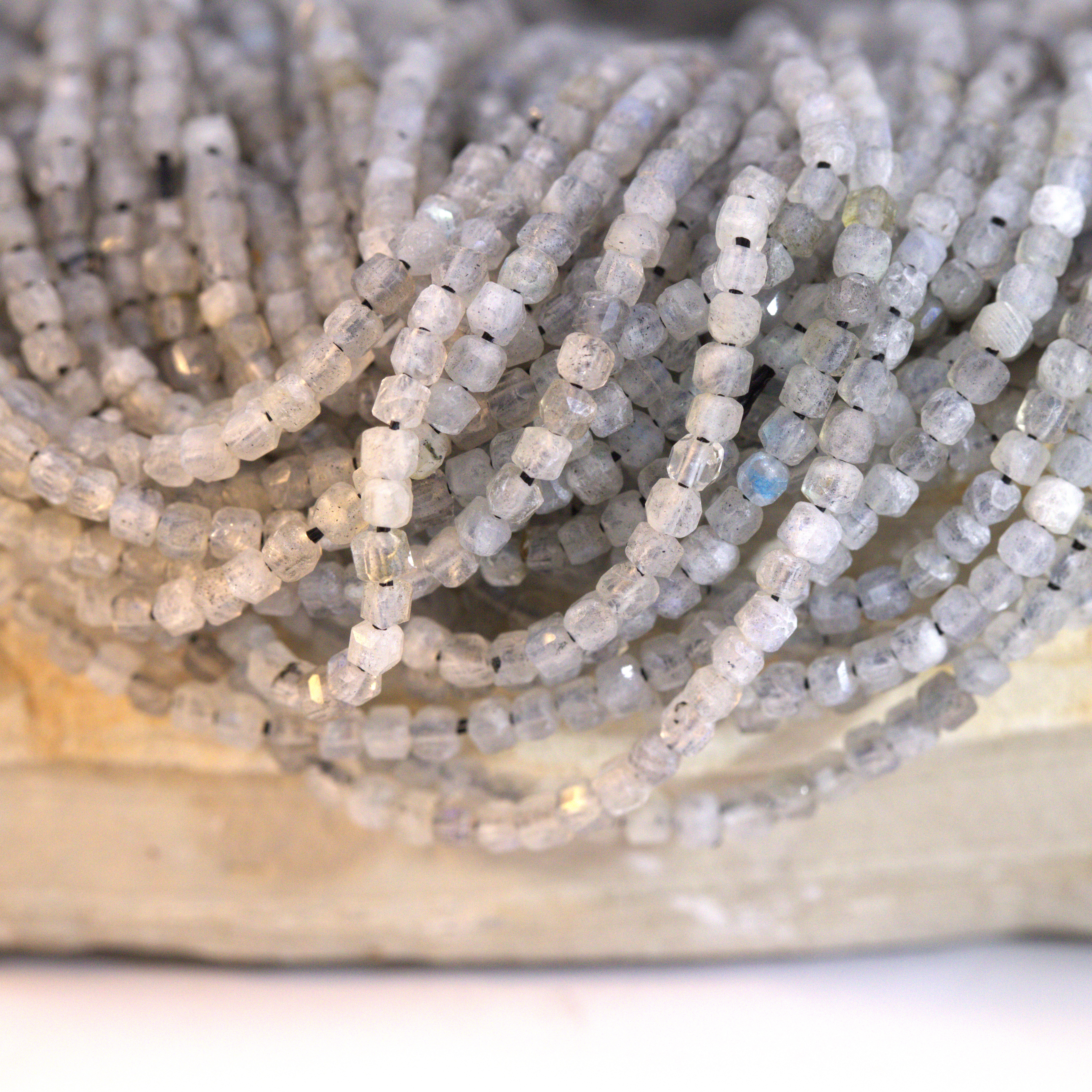 Labradorit Würfel Perlenstrang 2,4 x 2,4 x 2,4 mm (ca. 180 Perlen / ca. 38 cm Länge)
