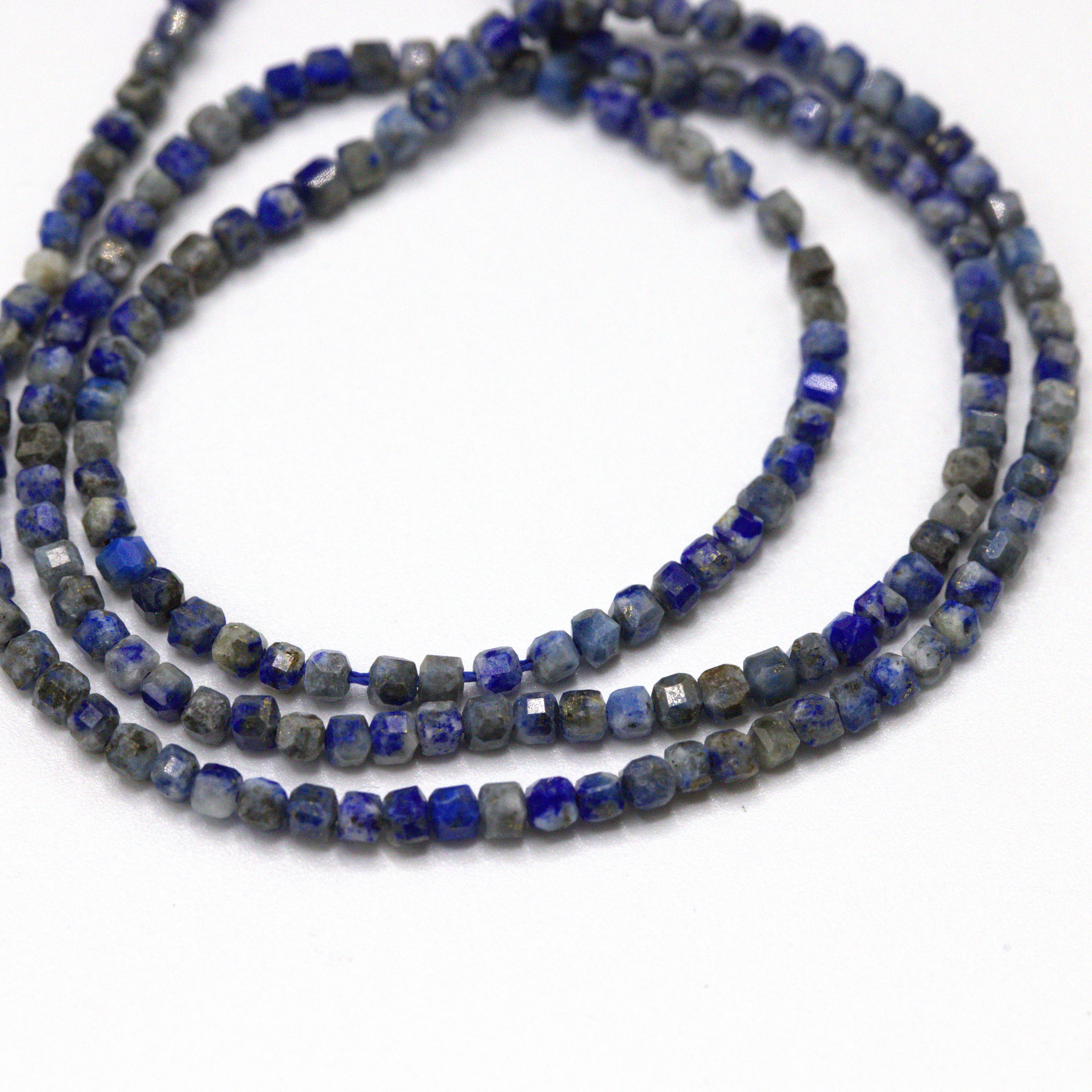 Lapislazuli Perlenstrang 2 x 2 x 2 mm unregelmäßige Würfel (ca. 40 cm Länge)