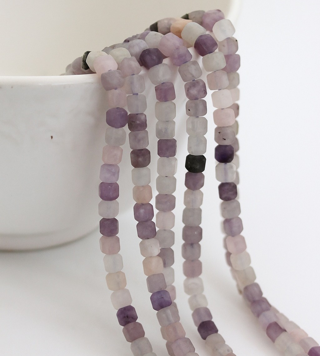 Lepidolith Perlenstrang ca. 2,5 x 2,5 x 2,5 mm facettierte Perlen (ca. 38 cm Länge)