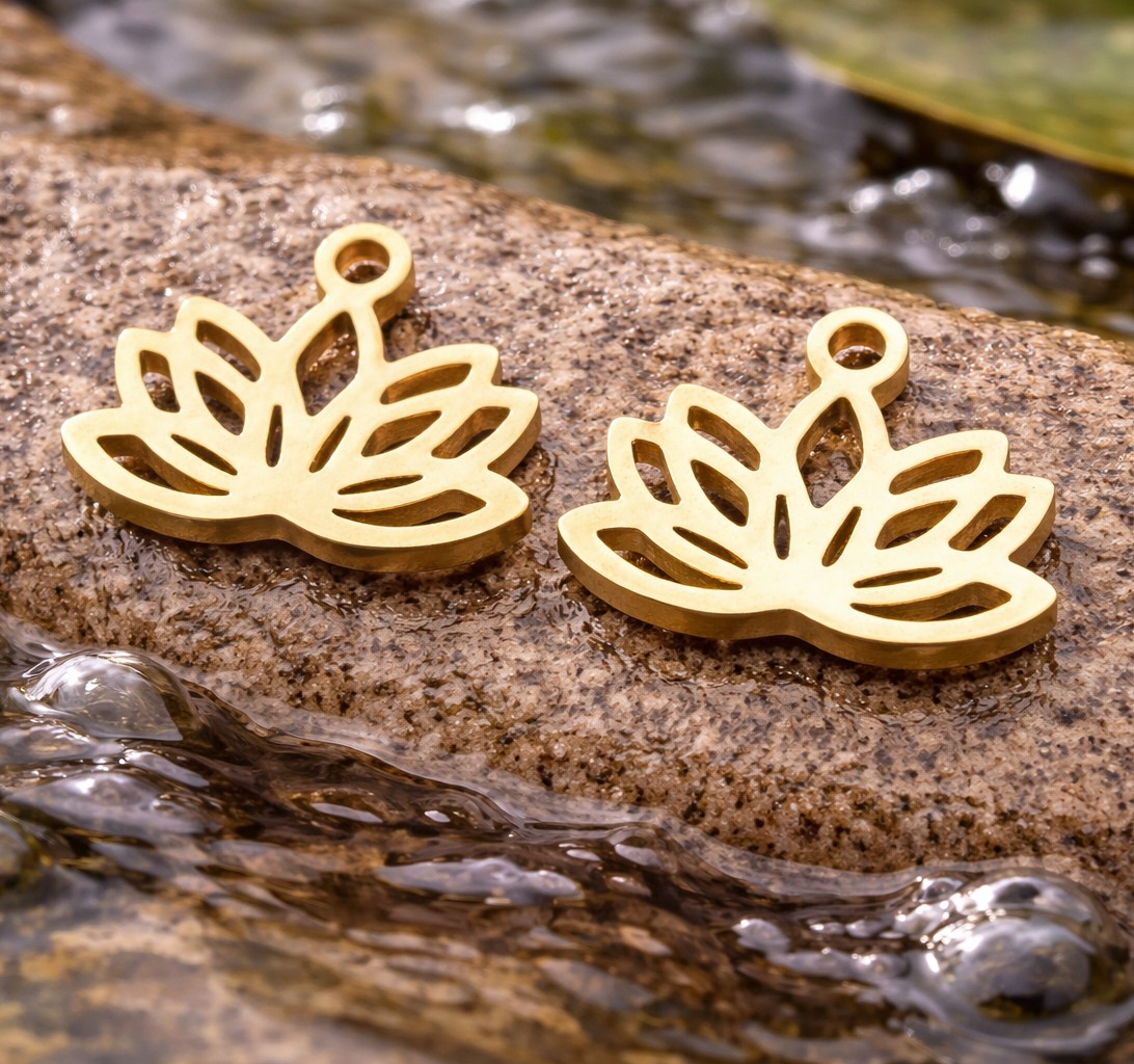 Produktinformationen "Lotusblume Charm Anhänger aus Edelstahl 7,5 x 10 x 1 mm - filigraner Charm für Schmuck DIY"