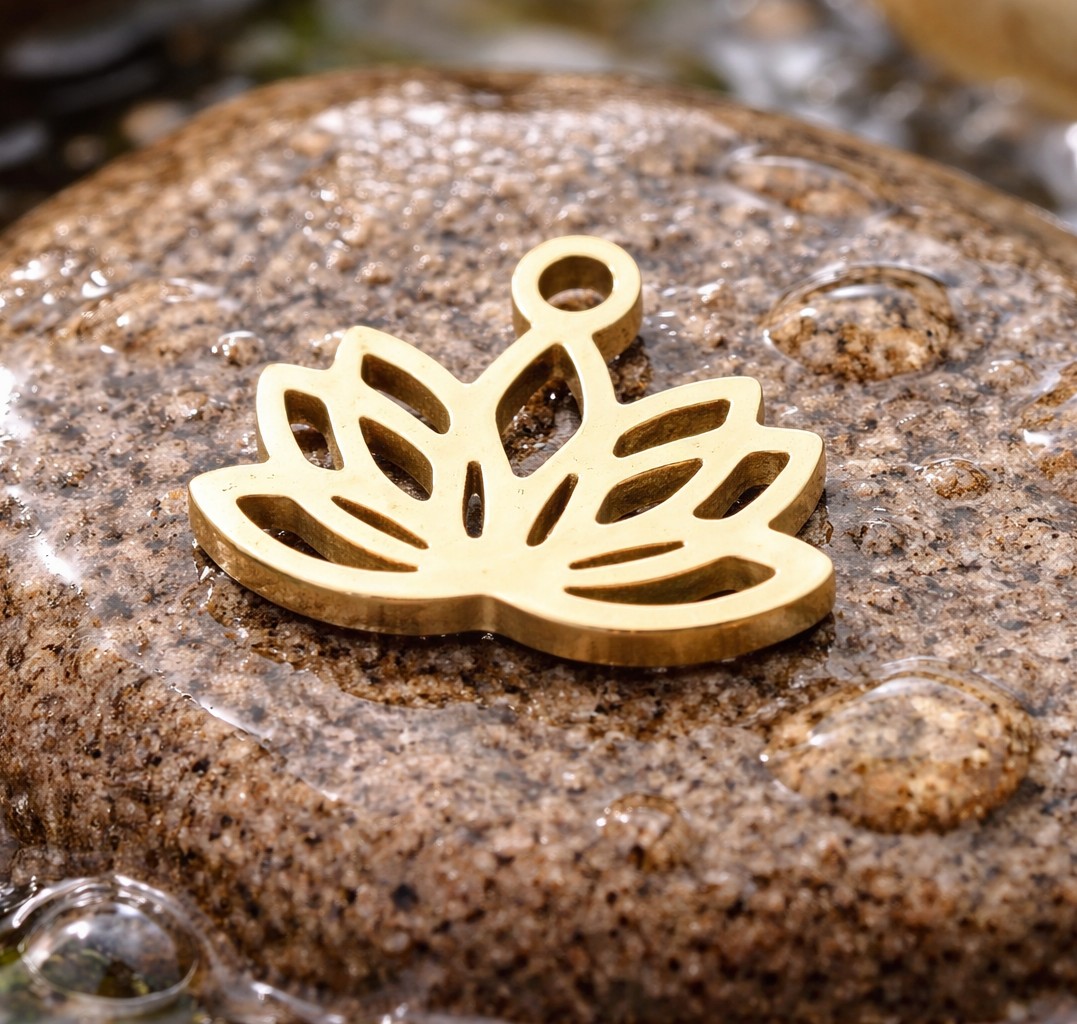 Dieser elegante Lotus Charm Anhänger in Goldoptik steht für Reinheit und innere Balance. Die filigrane Verarbeitung verleiht deinem Schmuckstück eine besondere Ausstrahlung.