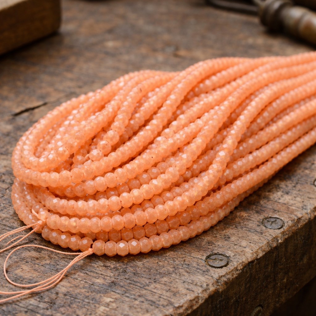 Produktinformationen "Malaysia Jade Perlen Strang facettiert gefärbt orange 4 x 2-3 mm (ca. 118 Perlen / ca. 36 cm Länge)"