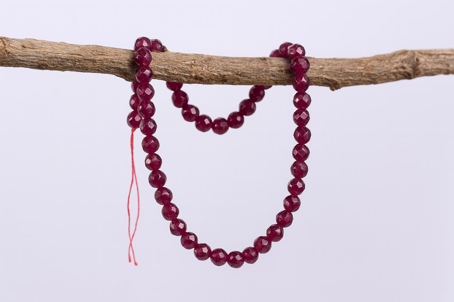 Malaysia Jadeperlenstrang 4 mm rot facettiert gefärbt (ca. 88 Perlen / ca. 37,5 cm Länge)