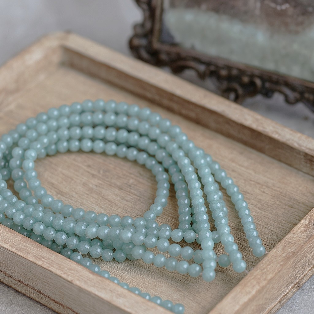 Malaysia Jadeperlenstrang 6 mm gefärbt rund glatt glänzend (ca. 63 Perlen / ca. 38,5 cm Länge)