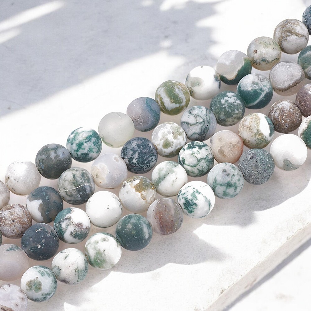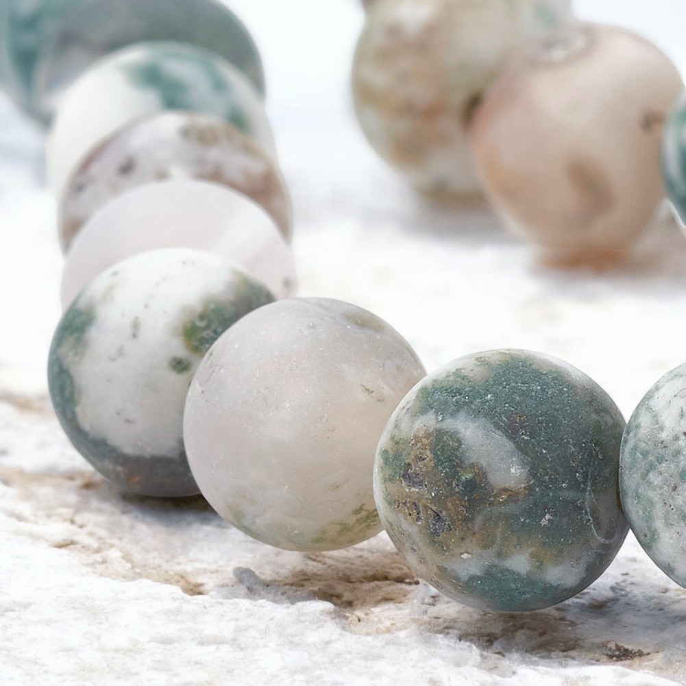 Produktinformationen "Matter gefrosteter Baumachat Perlenstrang 6,5 - 6,6 mm (ca. 61 Perlen / ca. 38 cm Länge)"