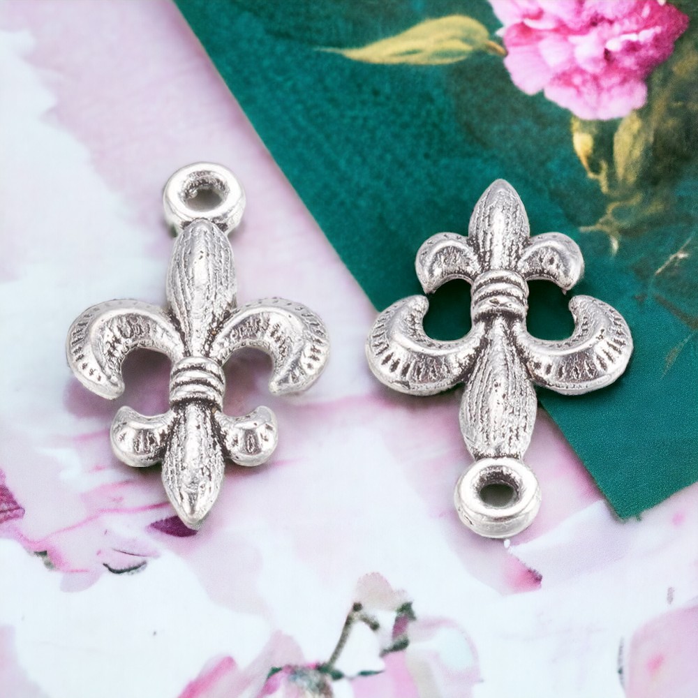 Produktinformationen "Metall Anhänger Charm Anhänger französische Lilie antik silberfarben 24 x 14 x 3 mm"