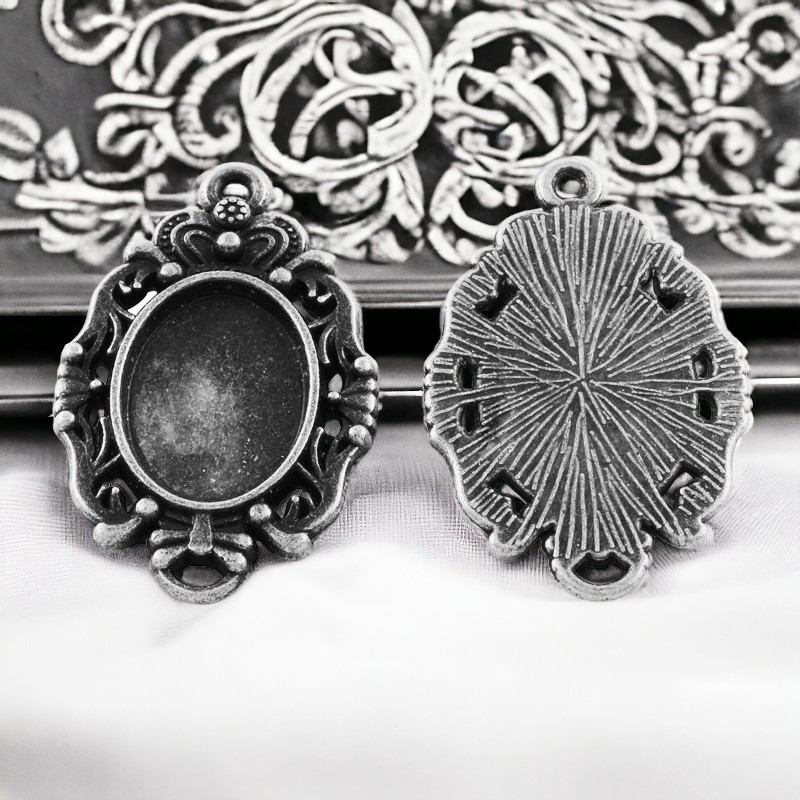 Produktinformationen "Metall Verbinder oval für Cabochons antik silberfarben 30 x 19 x 2 mm"