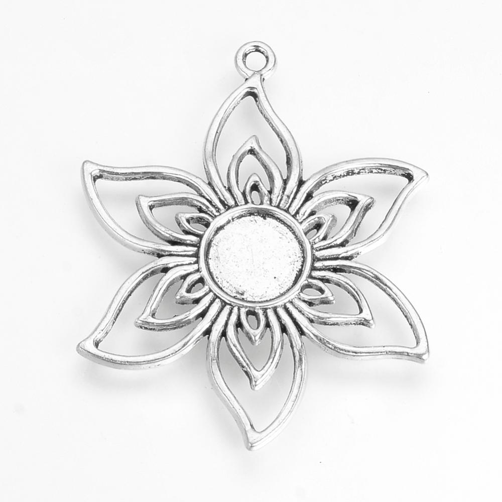 Metallanhänger Blume für Cabochons im tibetischen Stil antik silberfarben 47 x 38 x 2,5 mm
