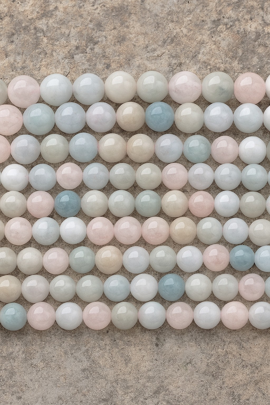 Morganit Perlenstrang 6 - 6,5 mm pastellfarben rund glatt glänzend (ca. 61 Perlen / ca. 39,5 cm Länge)