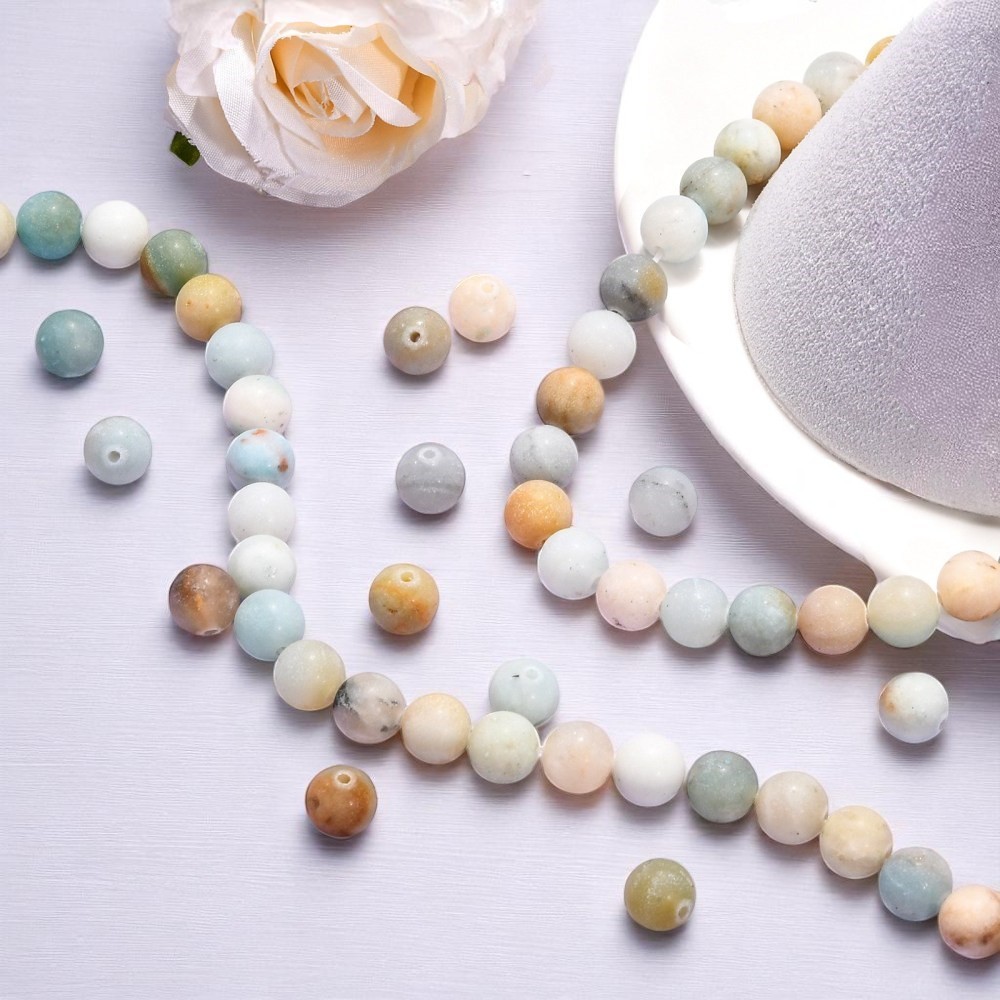Natürlicher Amazonit Perlenstrang matt gefrostet rund 8 mm (ca. 48 Perlen / ca. 40 cm Länge)