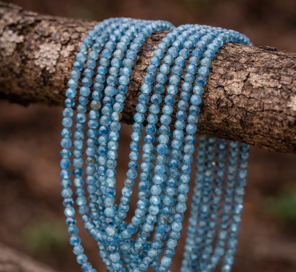 Produktinformationen "Natürlicher Apatit Perlenstrang 2 - 2,3 mm facettiert Klasse AA (ca. 166 Perlen / ca. 39 cm Länge)"