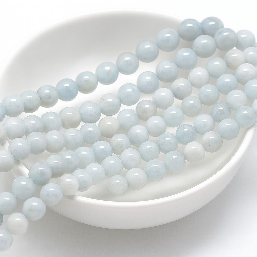 Produktinformationen "Natürlicher Aquamarin Perlenstrang 6,5 - 6,6 mm rund glatt glänzend (ca. 63 Perlen / ca. 40 cm Länge"