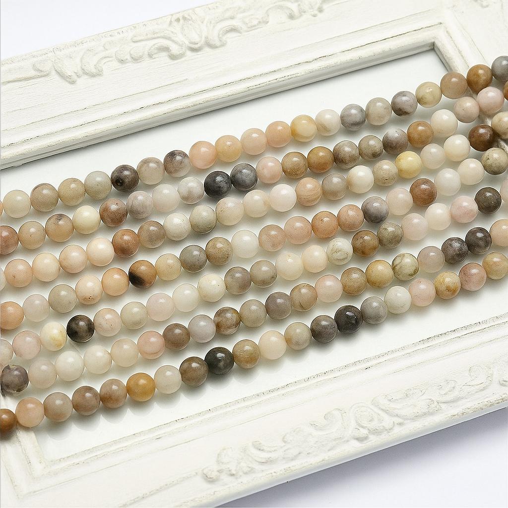 Produktinformationen "Natürlicher Bambusblatt Achat Perlenstrang rund glatt 6 mm (ca. 60 Perlen / ca. 37 cm Länge)"
