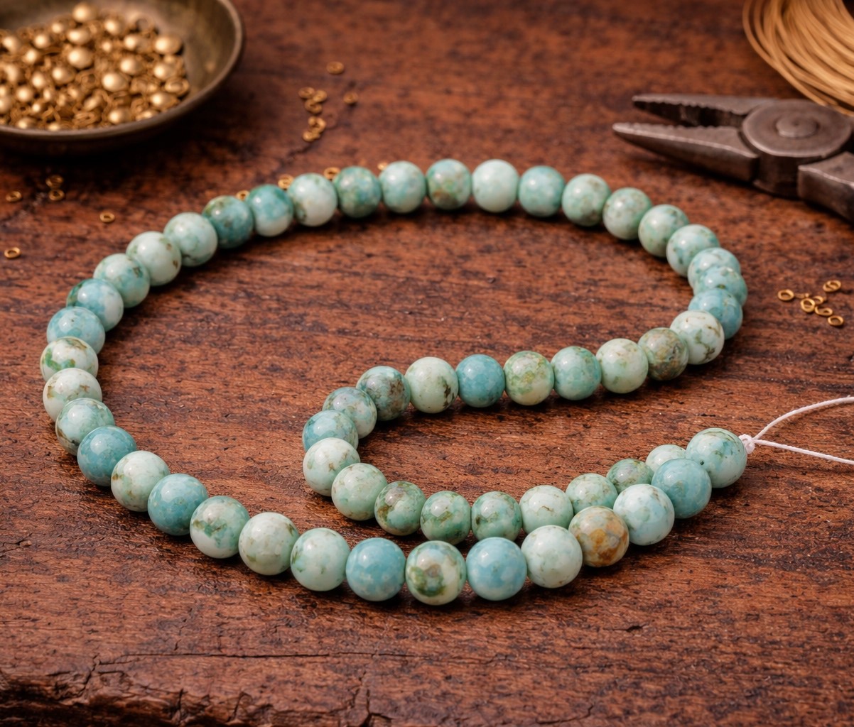 Produktinformationen "Natürlicher Hemimorphit Perlenstrang 8 - 8,4 mm rund glatt glänzend (ca. 47 Perlen / ca. 40 cm Länge"