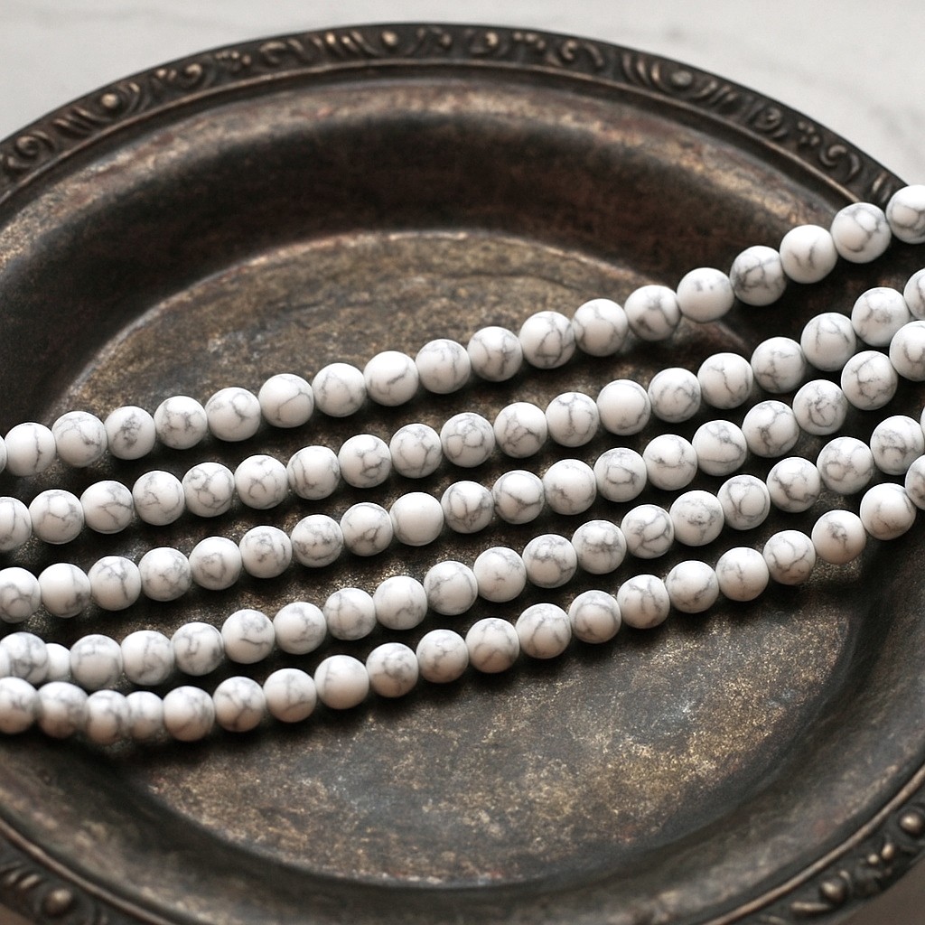 Natürlicher Howlith Perlenstrang rund matt 4 mm (ca. 82 Perlen / ca. 38 cm Länge)