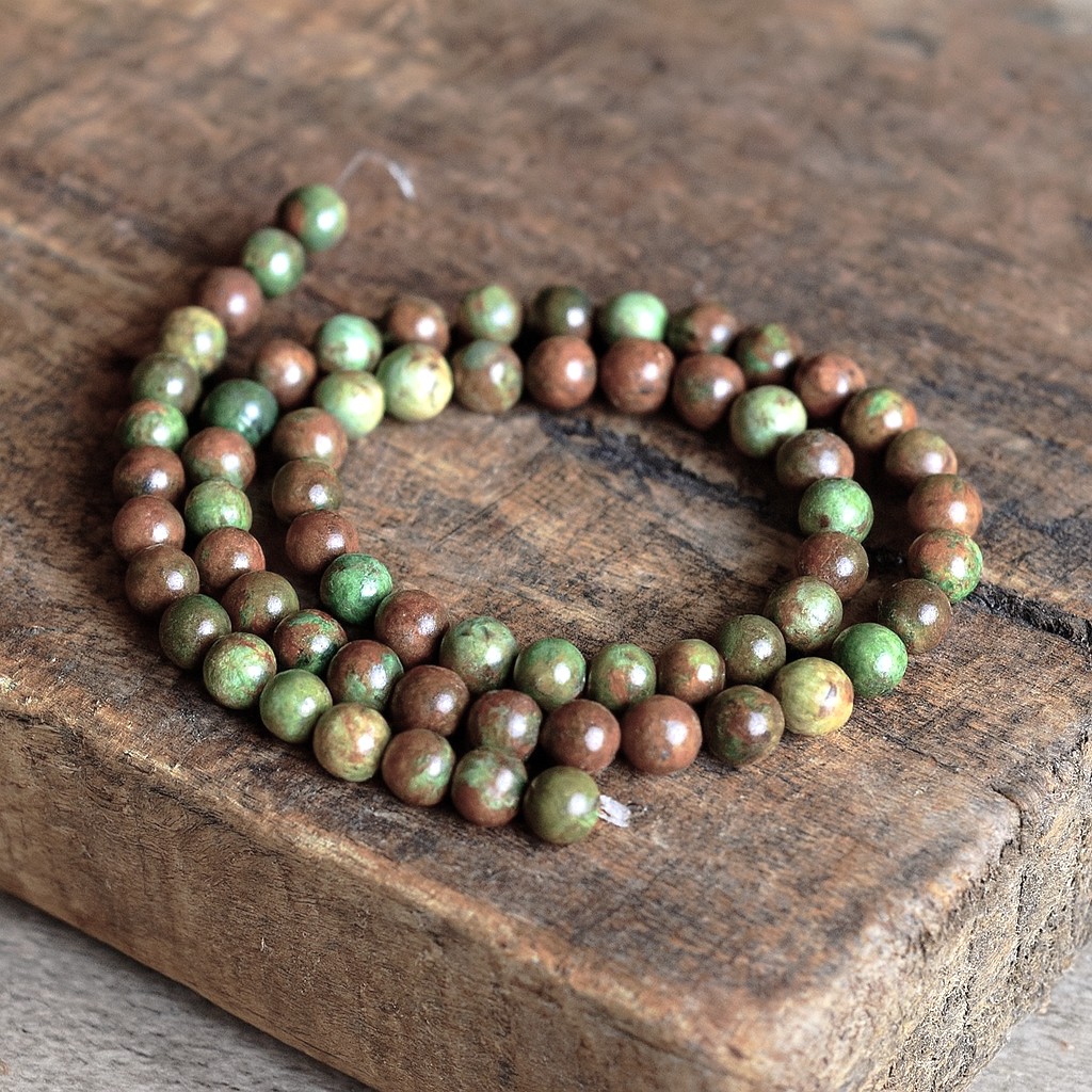 Natürlicher Jade Perlenstrang mit grün türkisem Quarz 6 mm rund glatt glänzend (ca. 61 Perlen / ca.