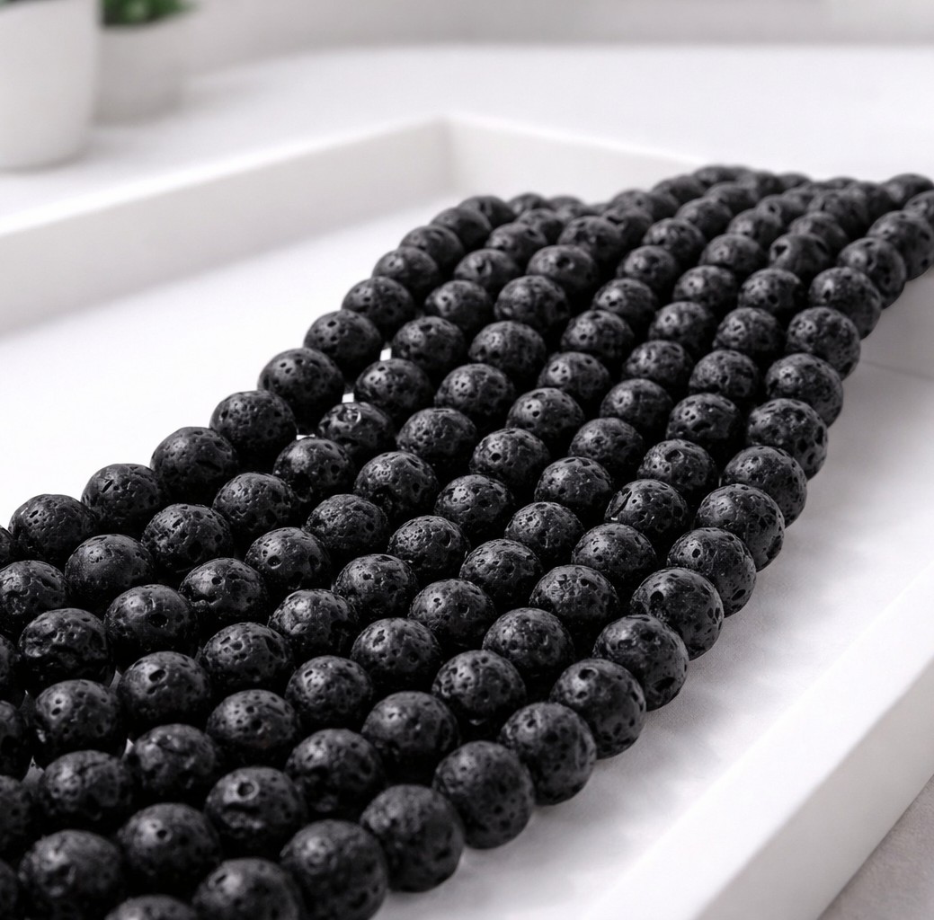 Lavaperlen werden aus erstarrter Magma Schmelze hergestellt. Die Oberfläche ist gewachst.