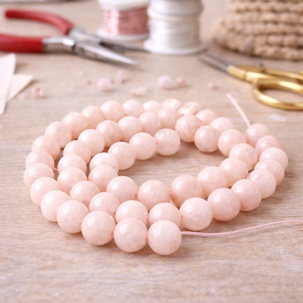 Produktinformationen "Natürlicher Morganit Perlenstrang rund glatt glänzend 8 mm (ca. 48 Perlen / ca. 38 cm Länge)"