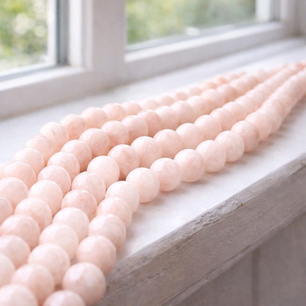Natürlicher Morganit Perlenstrang rund glatt glänzend 8 mm (ca. 48 Perlen / ca. 38 cm Länge)