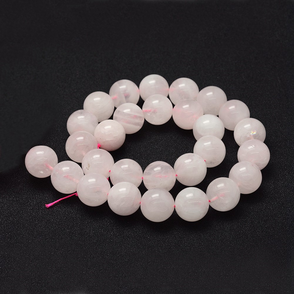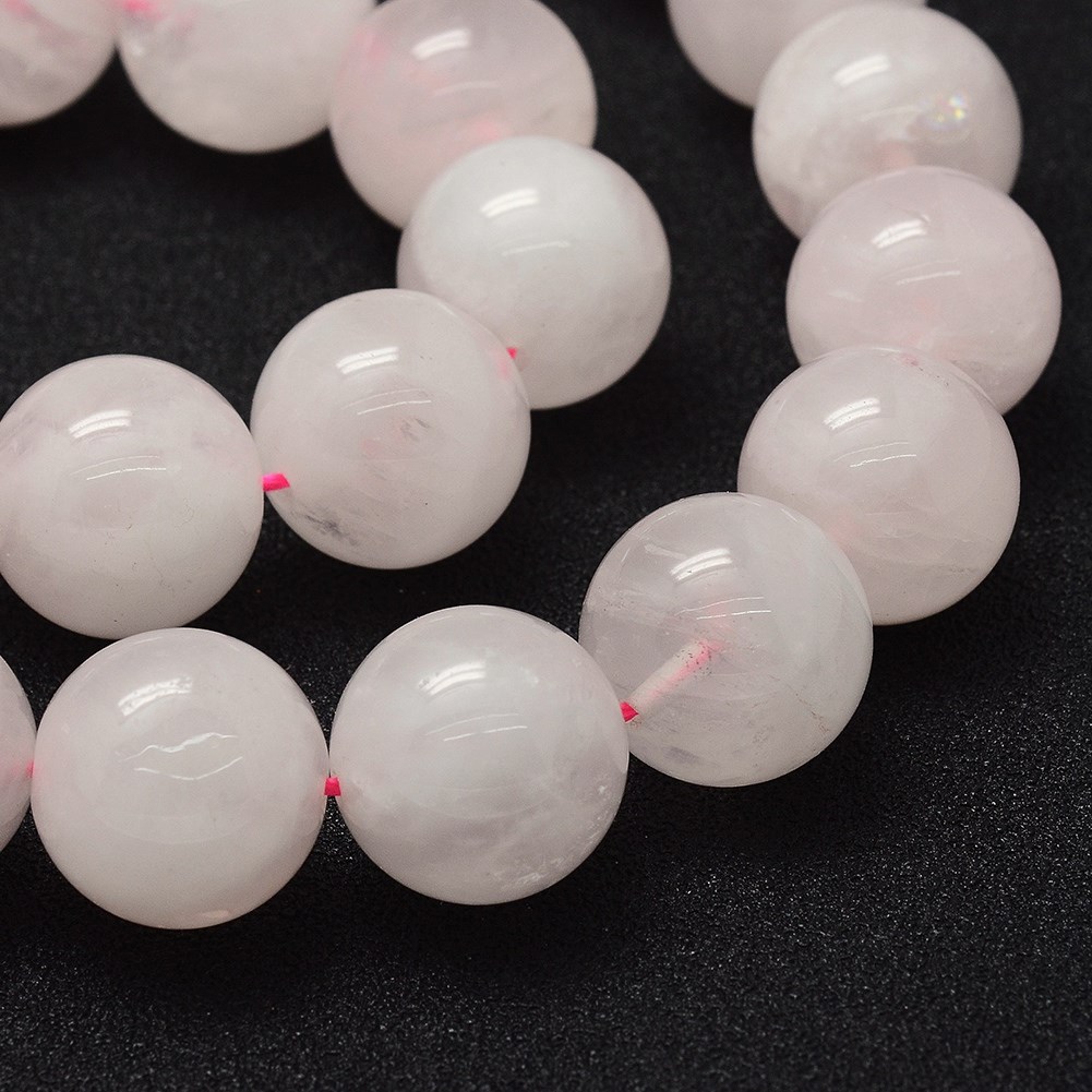 Natürlicher Rosenquarz Perlenstrang 8 - 8,5 mm zartrosa leicht transparent (ca. 46 Perlen / ca. 38,5 cm Länge)