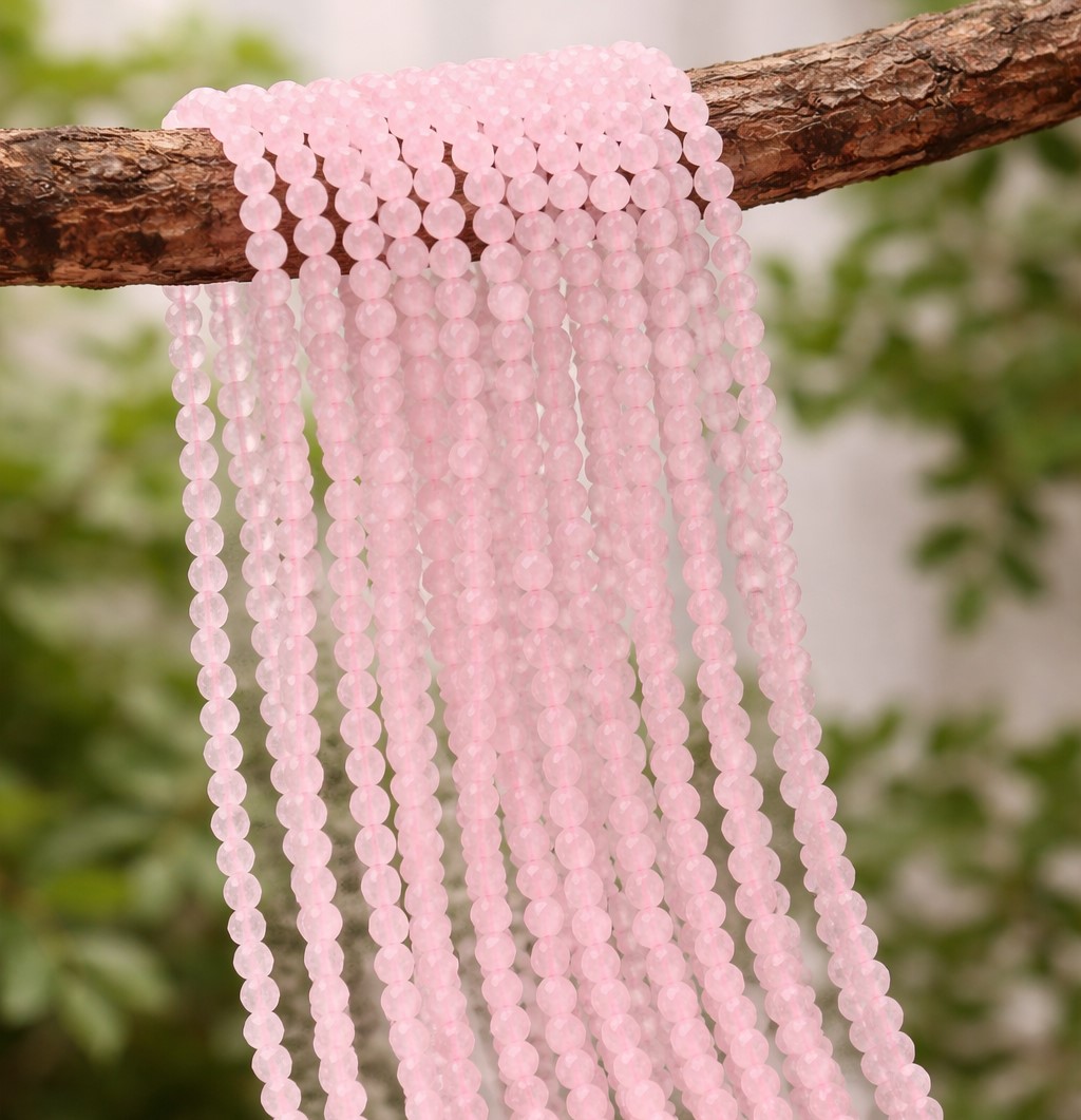 Natürlicher Rosenquarz Perlenstrang facettiert 3,5 - 3,6 mm (ca. 136 Perlen / ca. 38,5 cm Länge)