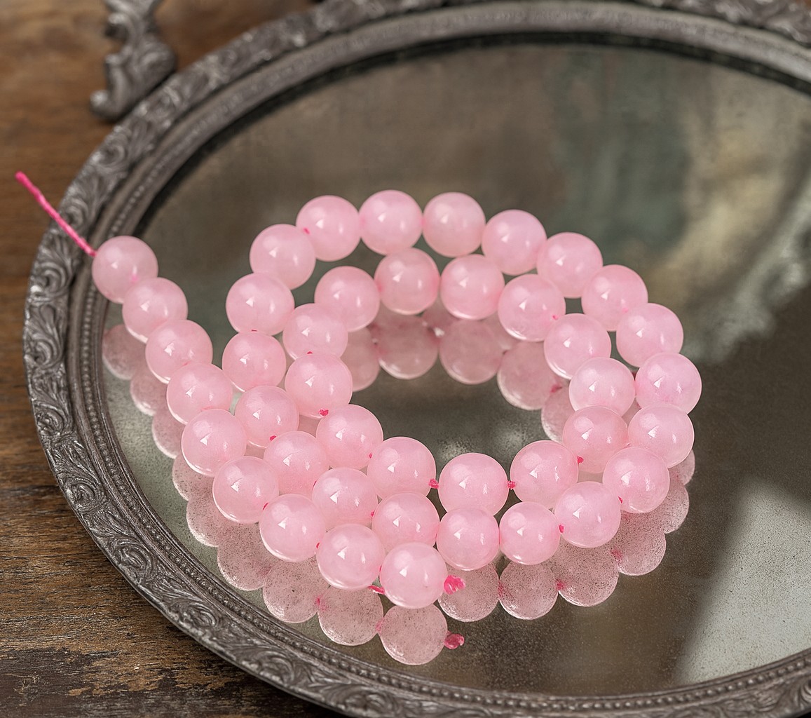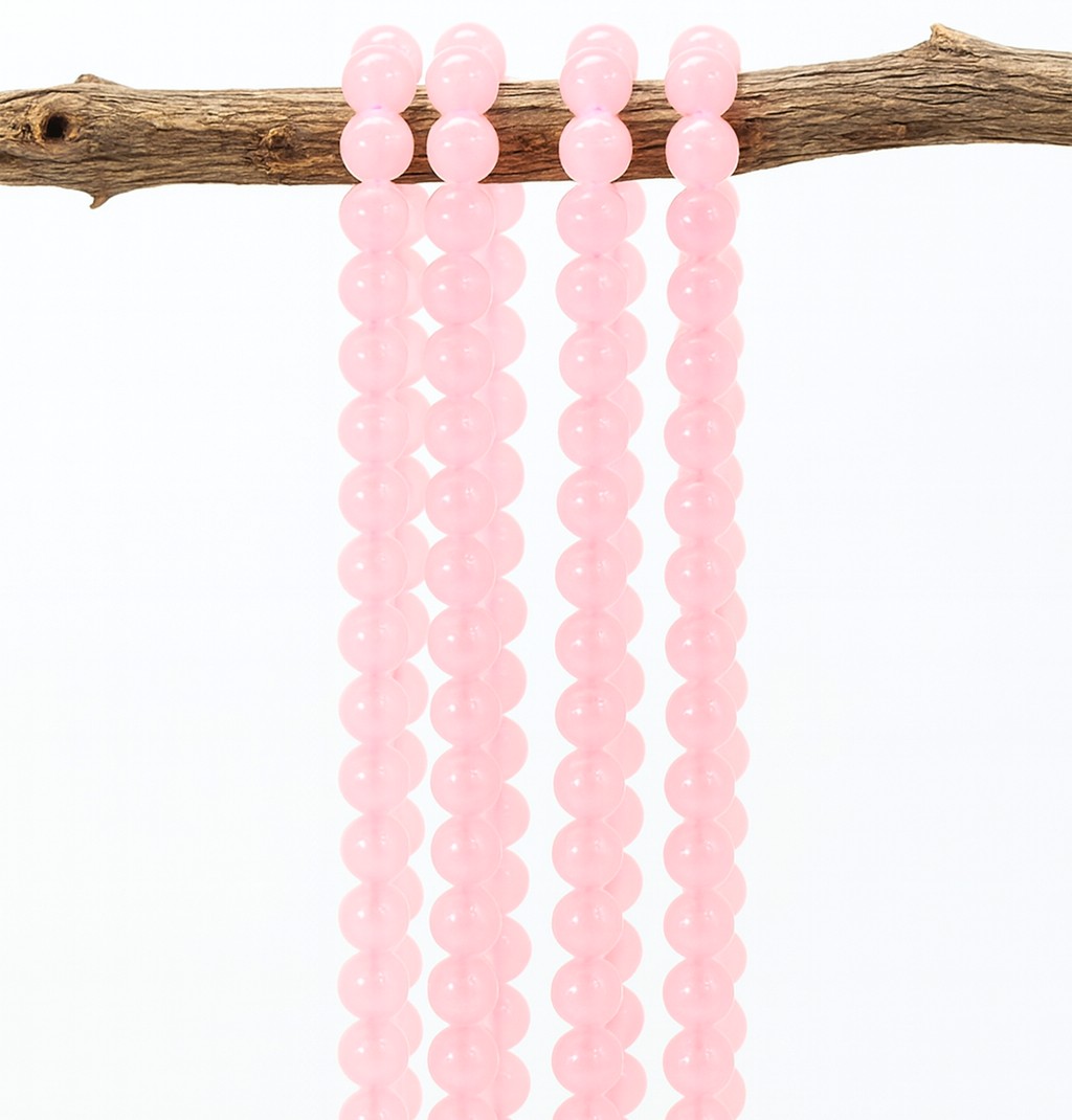 Produktinformationen "Natürlicher Rosenquarz Perlenstrang rund glatt glänzend 6,5 - 6,8 mm (ca. 58 Perlen / ca. 38 cm Länge)"