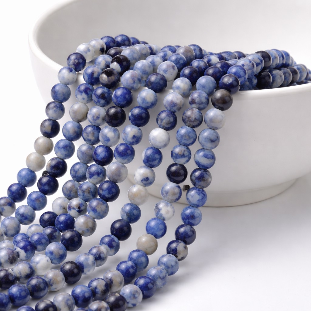 Produktinformationen "Natürlicher Sodalith Perlenstrang Klasse AB rund glatt 6,3 - 6,4 mm (ca. 60 Perlen / ca. 38 cm Länge)"