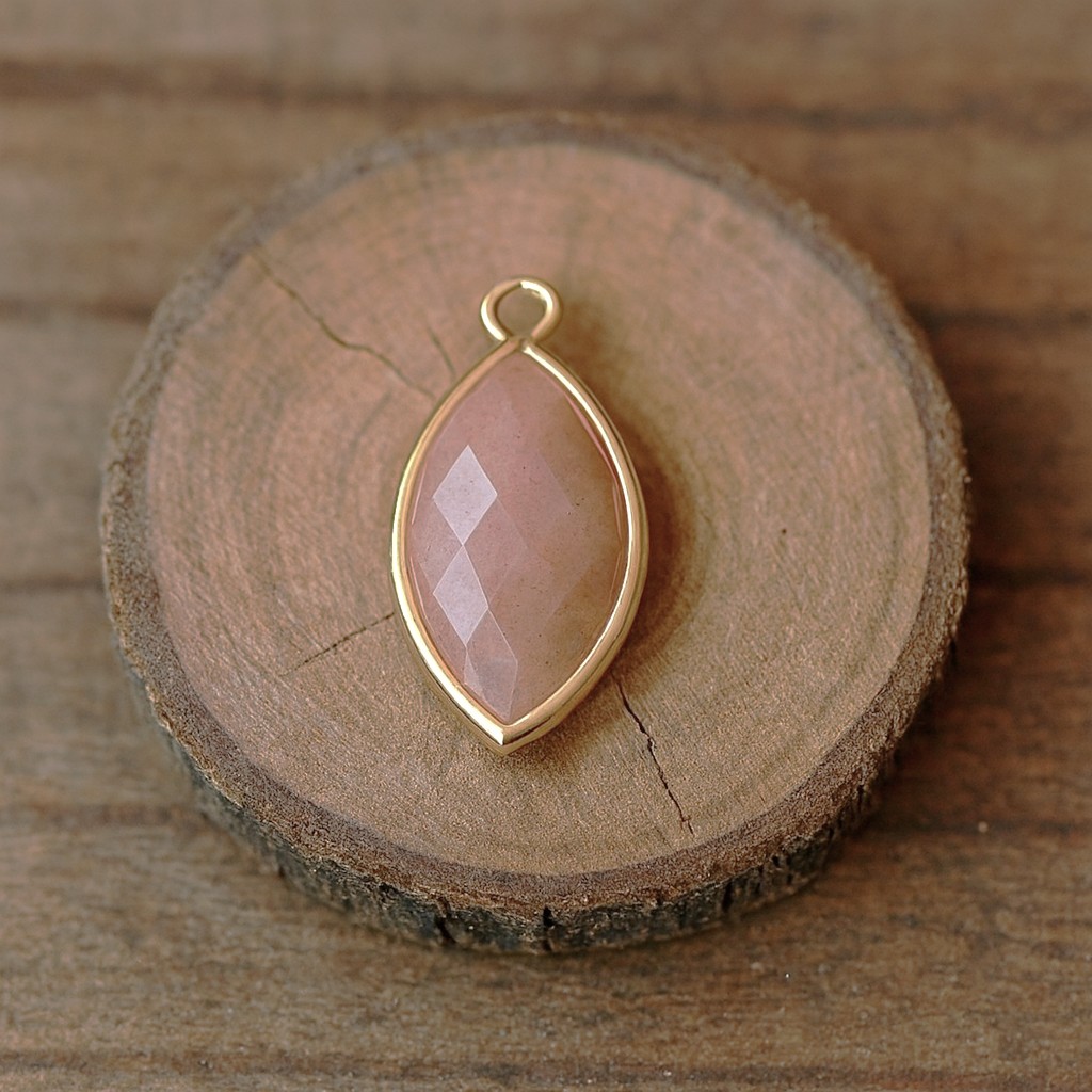 Natürlicher Sonnenstein Anhänger facettiert mit goldfarbener Metalleinfassung 22 x 12 x 5,5 mm