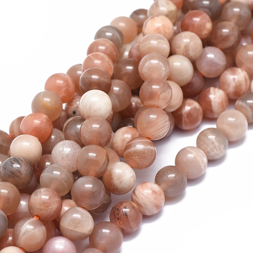 Produktinformationen "Natürlicher Sonnenstein Perlenstrang 8 - 8,2 mm (ca. 50 Perlen / ca. 38 cm Länge)"
