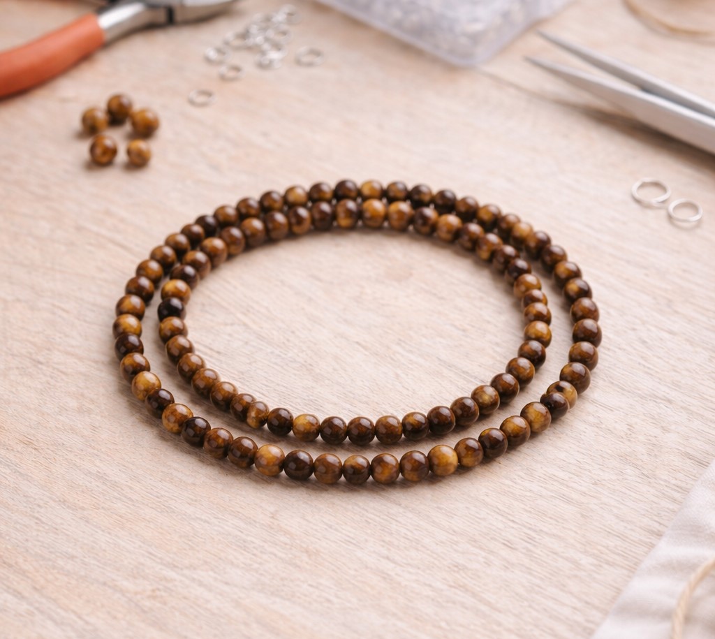 Produktinformationen "Natürlicher Tigerauge Perlenstrang rund glatt glänzend 4,5 - 4,8 mm (ca. 88 Perlen / ca. 38 cm Länge"