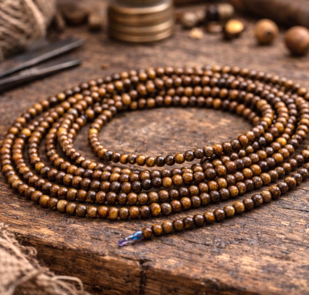 Dieser Perlenstrang hat einen warmen Gold- Braunton. Der Schimmer erinnert sehr an die Pupille einer Katze.