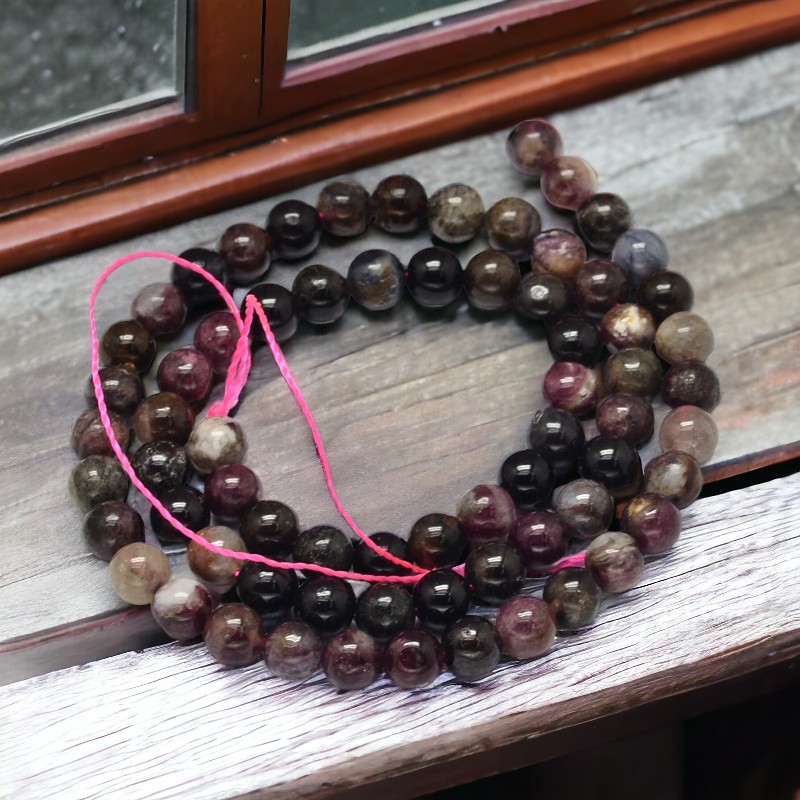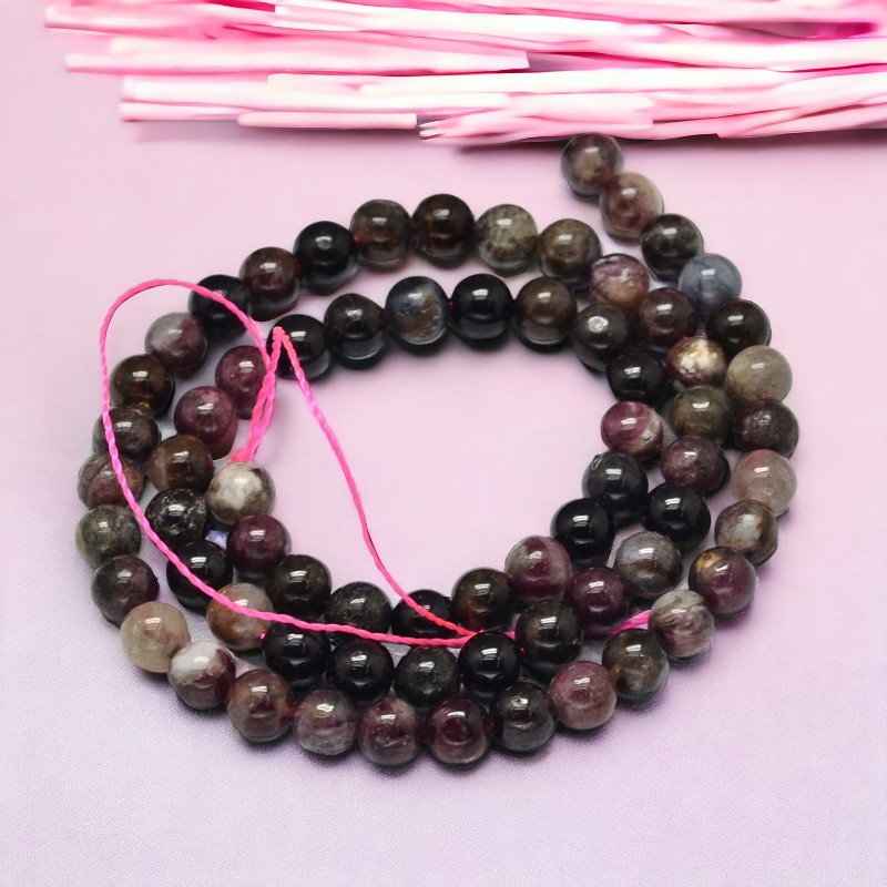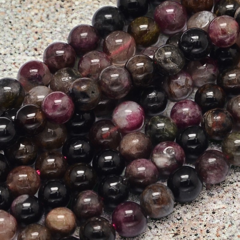 Natürlicher Turmalin Perlenstrang ca. 6,5 - 7 mm rund glatt (ca. 59 Perlen / ca. 38,5 cm Länge)