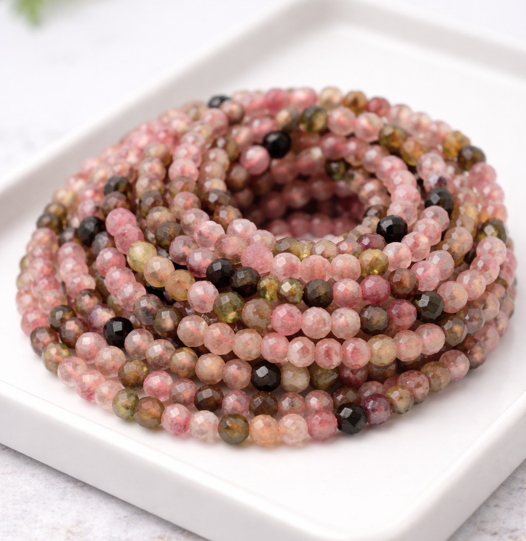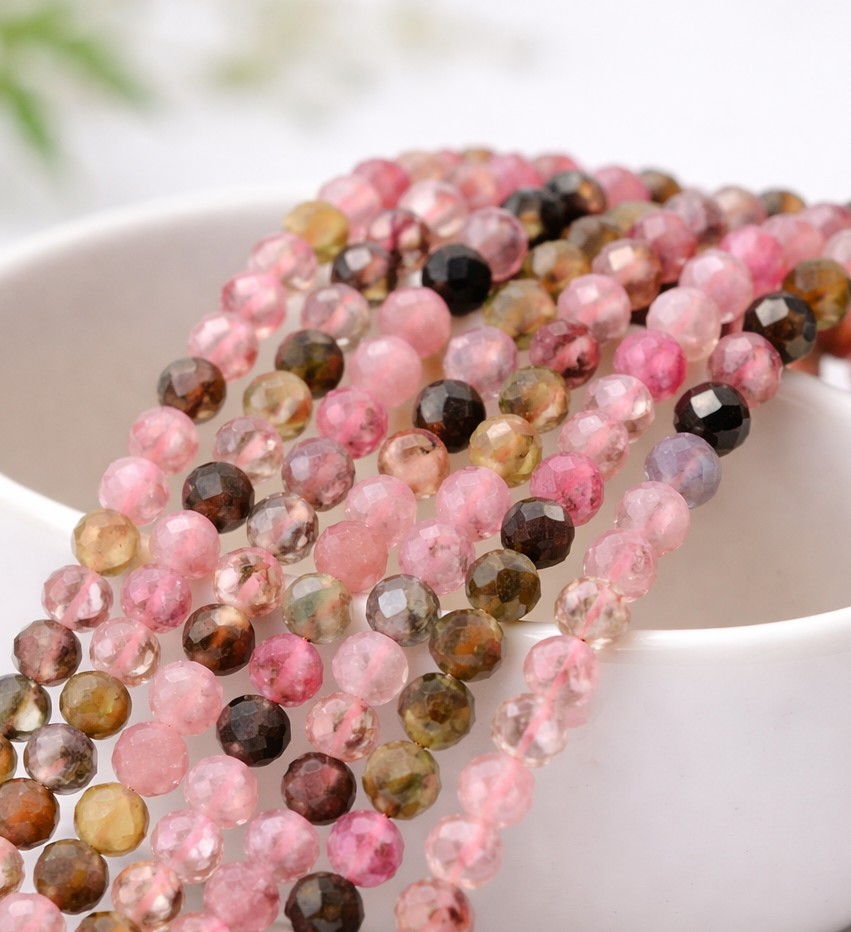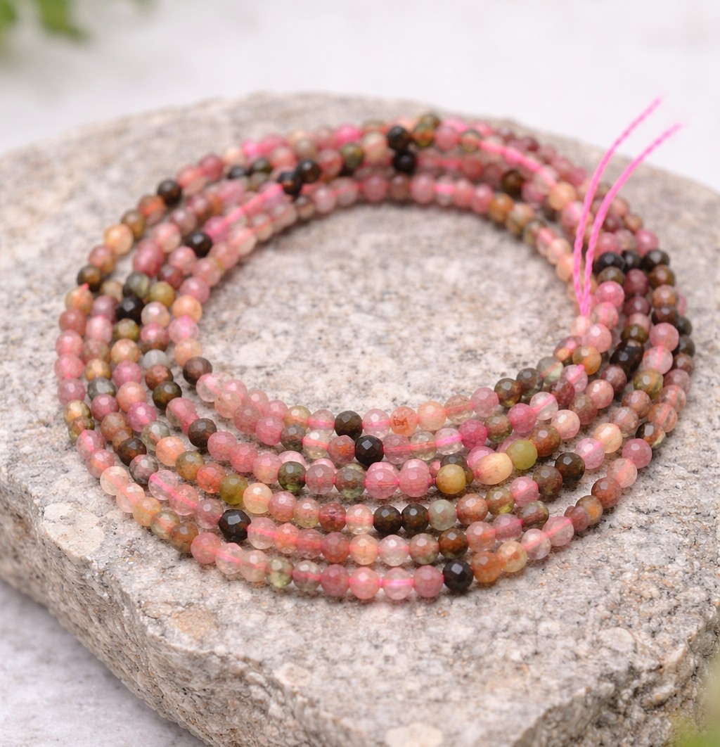Natürlicher Turmalin Perlenstrang facettiert 2,3 mm (ca. 175 Perlen / ca. 38 cm Länge)