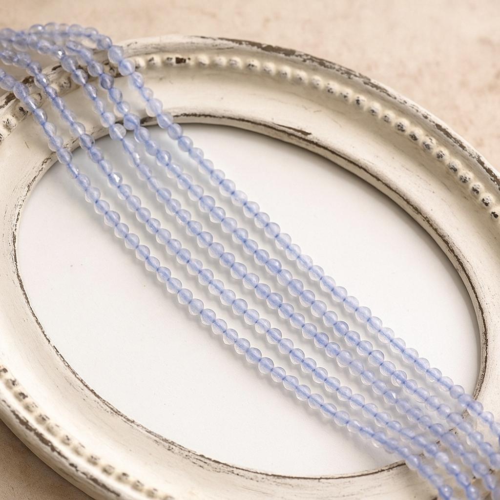 Durch den feinen Schliff funkeln diese Perlen in hellen Blautönen