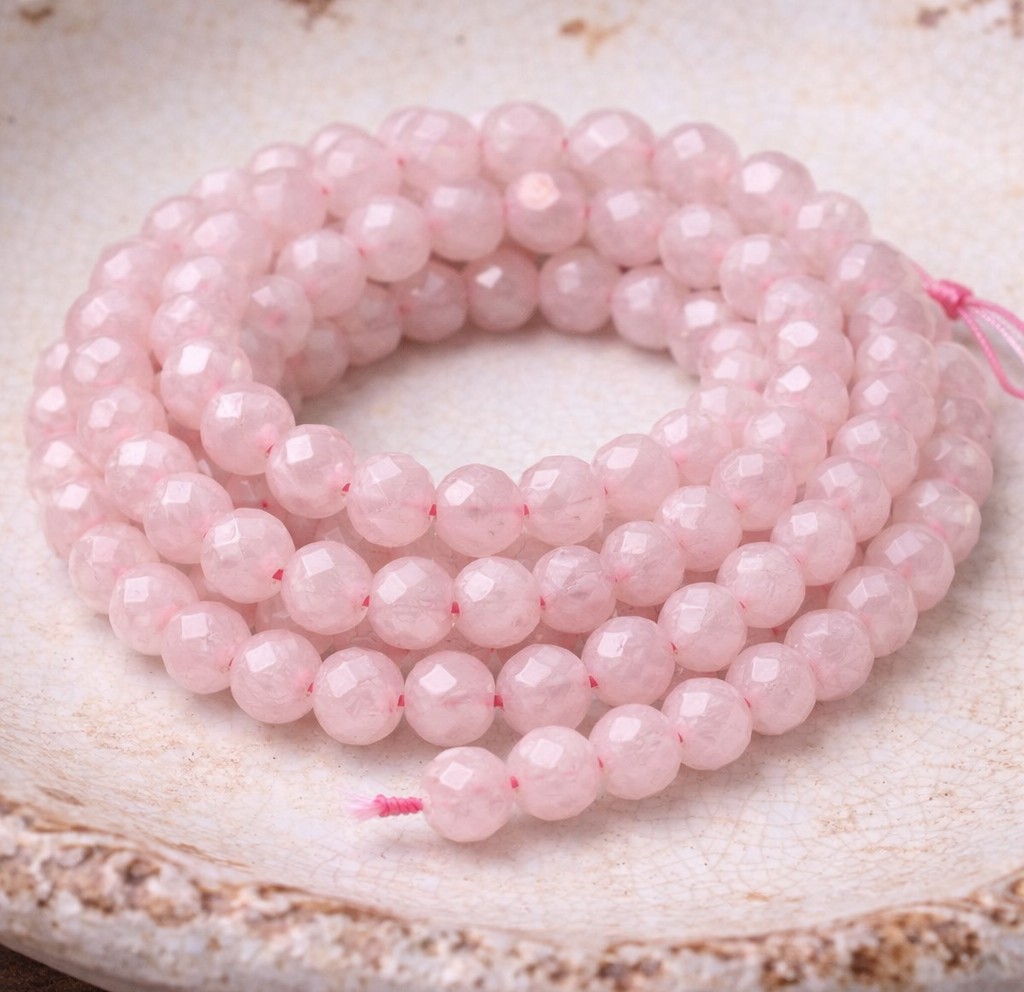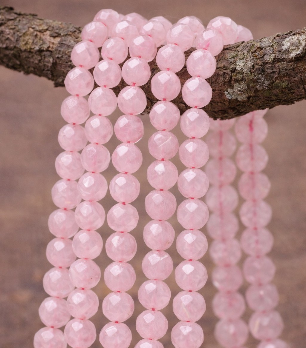 Produktinformationen "Natürlicher facettierter Rosenquarz Perlenstrang 6 - 6,3 mm (ca. 60 Perlen / ca. 38,5 cm Länge)"