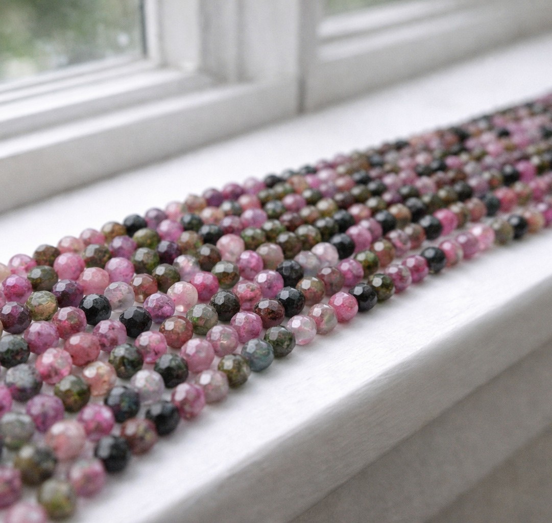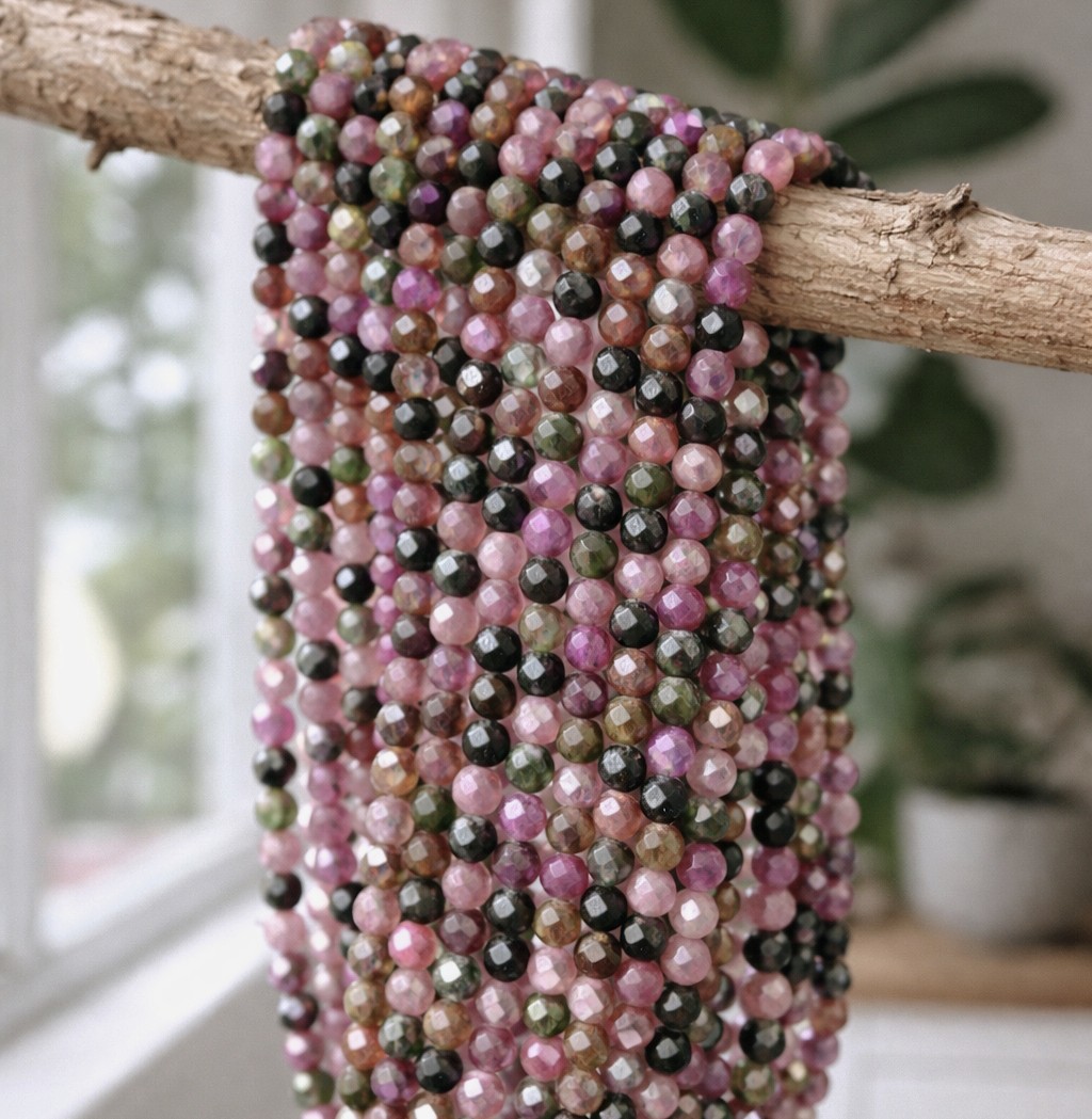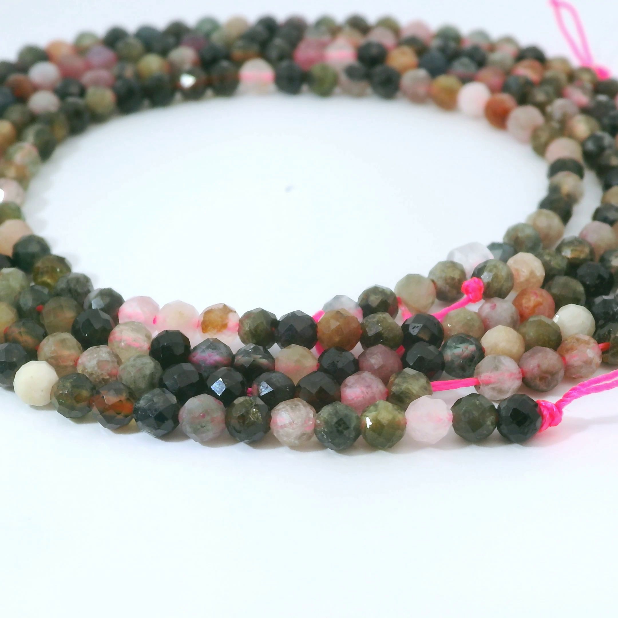 Natürlicher facettierter Turmalin Perlenstrang 3 - 3,5 mm (ca. 178 Perlen / ca. 39 cm Länge)