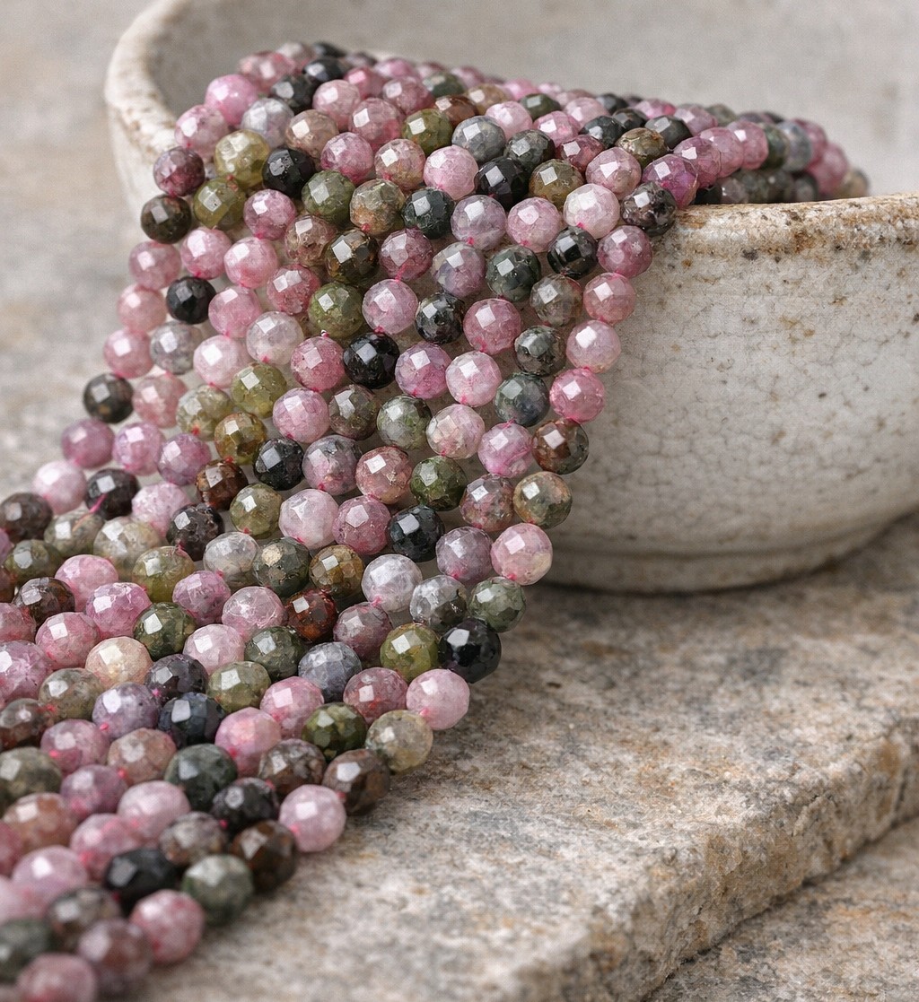 Produktinformationen "Natürlicher facettierter Turmalin Perlenstrang 3 - 3,5 mm (ca. 178 Perlen / ca. 39 cm Länge)"