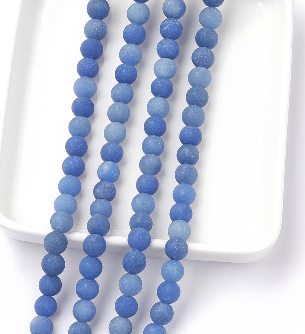 Produktinformationen "Natürlicher gefrosteter matter Aventurin Perlenstrang 6,7 - 6,8 mm blau (ca. 60 Perlen / ca. 37 cm Länge)"