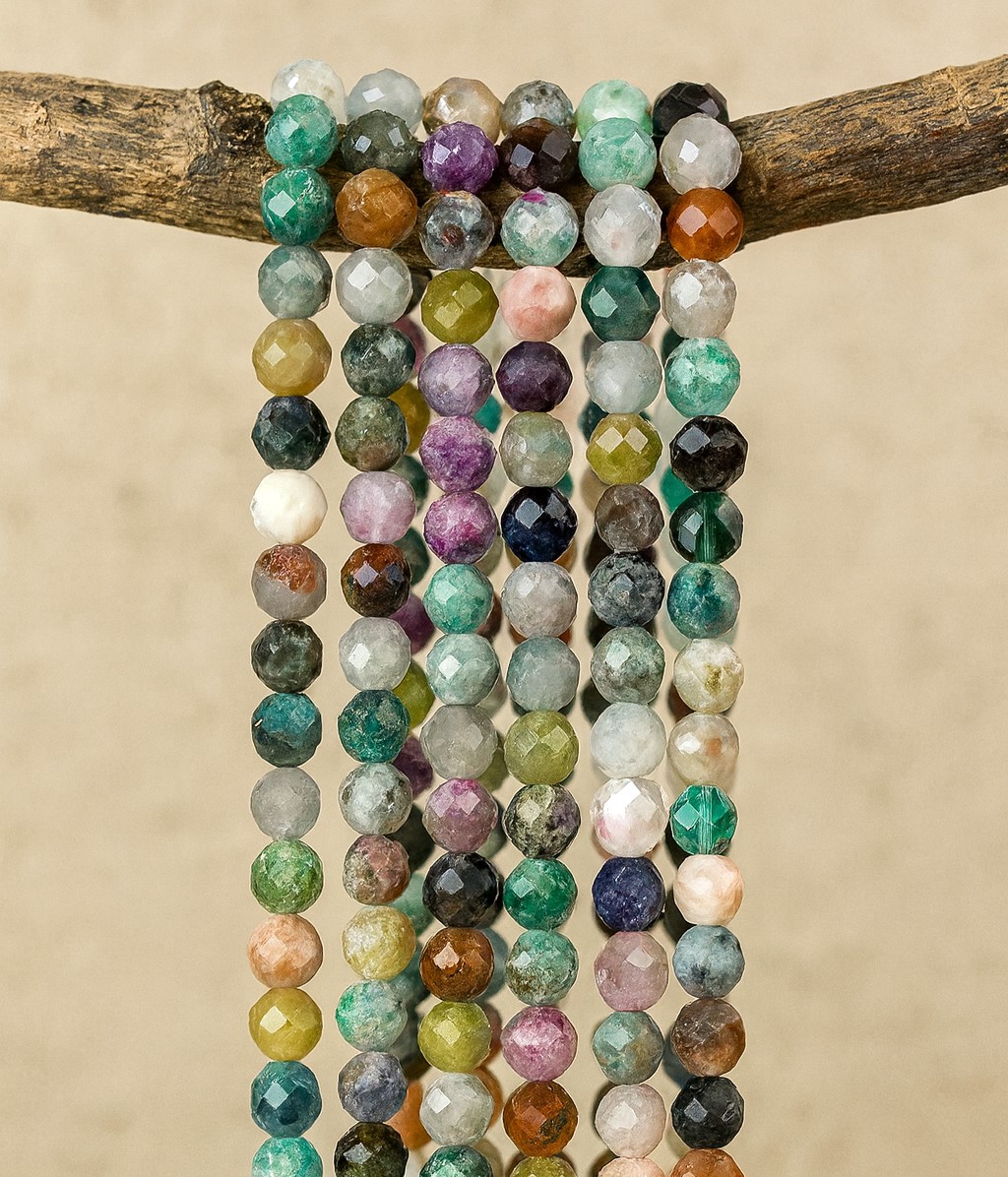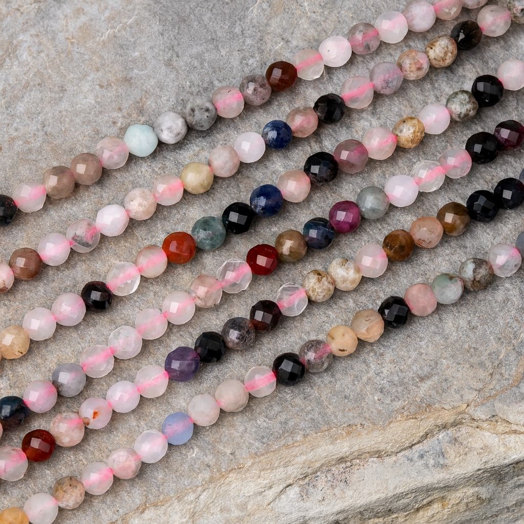 Produktinformationen "Natürlicher gemischter Edelstein Perlenstrang facettiert 3 x 2 - 3 mm (ca. 110 Perlen / ca. 38 cm Lä"