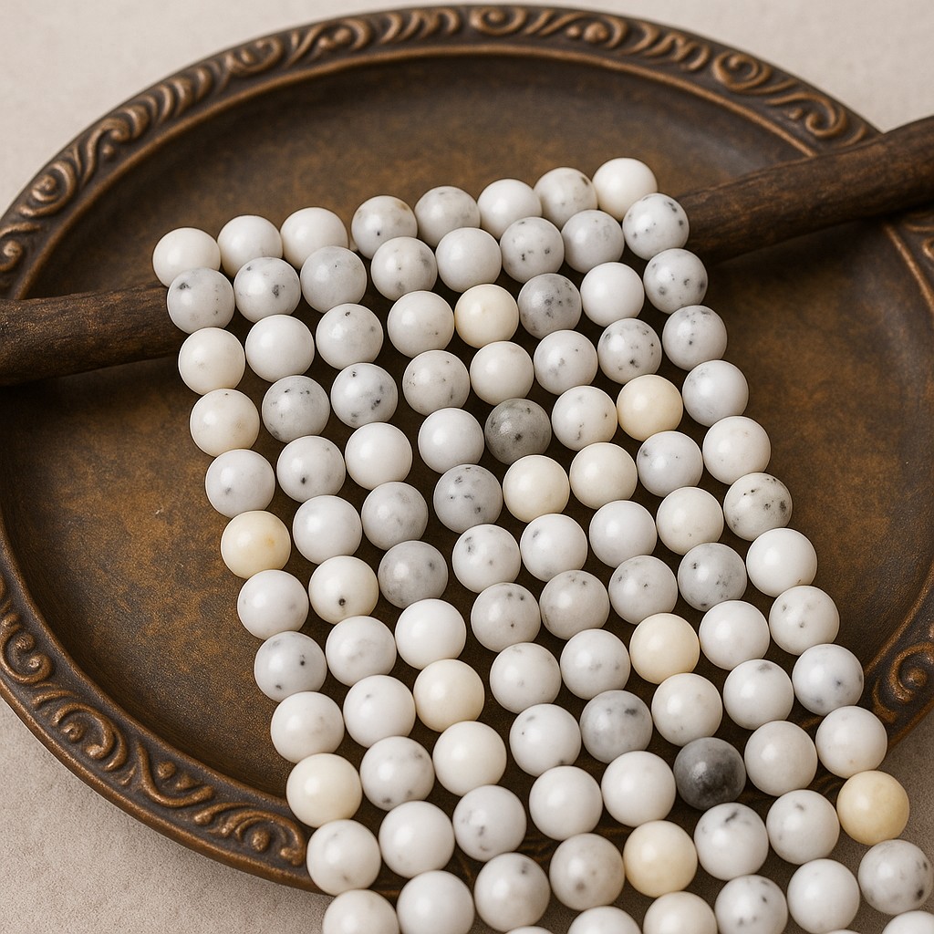 Natürlicher heller afrikanischer Opal Perlenstrang 6,5 - 7 mm rund glatt glänzend (ca. 61 Perlen / c