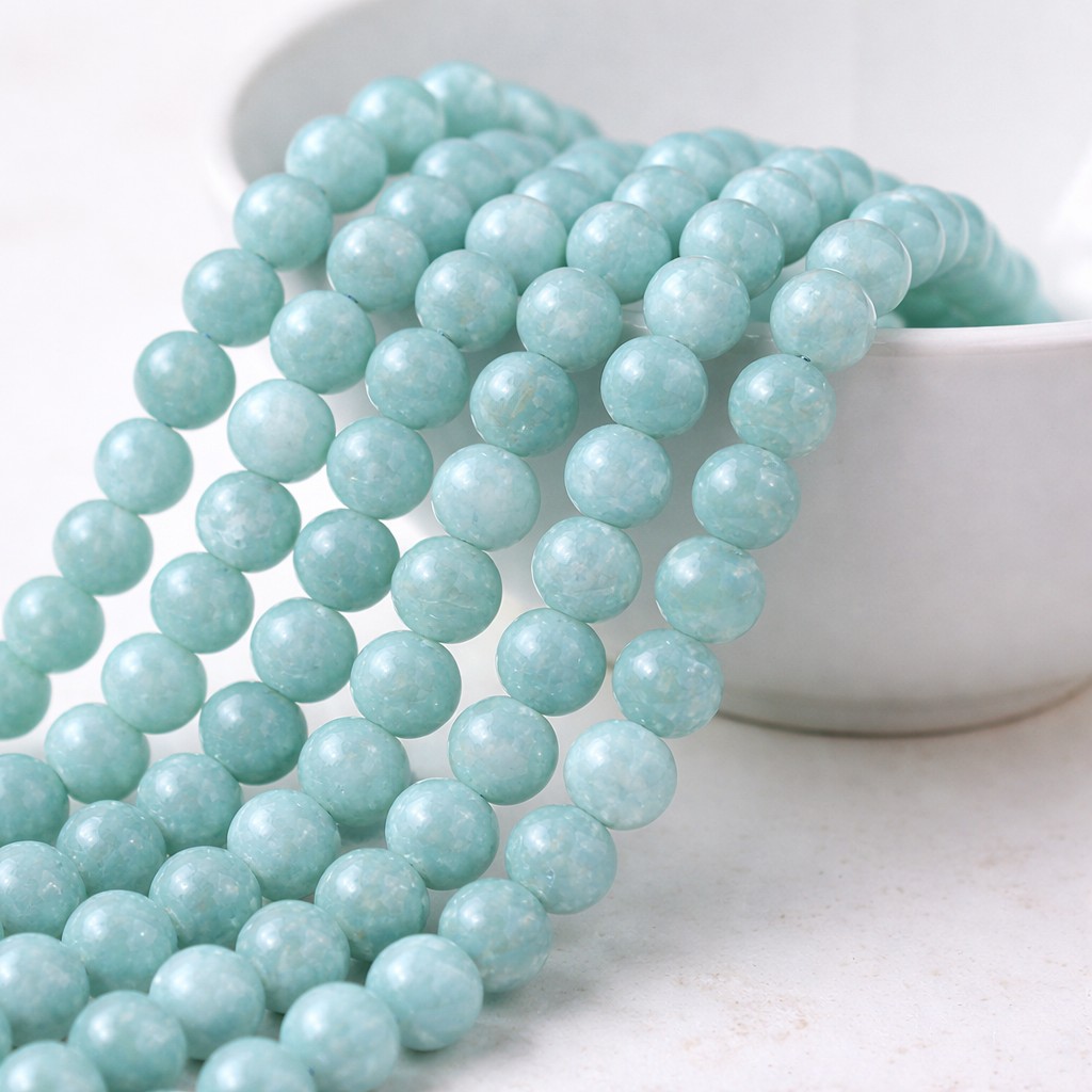 Produktinformationen "Natürlicher kurzer Amazonit Perlenstrang 6 - 6,4 mm rund glatt glänzend (ca. 30 Perlen / ca. 19 cm Länge)"