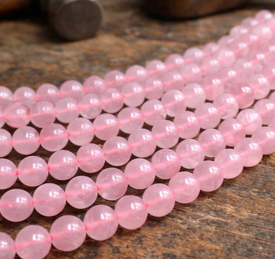 Natürlicher kurzer zartrosa Rosenquarz Perlenstrang rund glatt glänzend 8 - 8,3 mm (ca. 24 Perlen / ca. 20